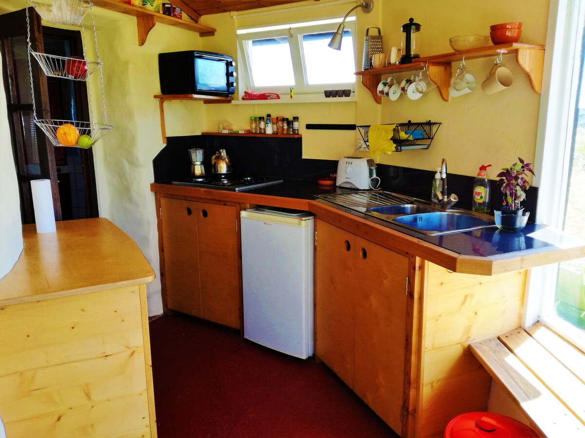 Quarto com cama de casal. Da sua janela todos os dias se pode admirar o lindíssimo pôr de sol. A sala é acolhedora, ideal para quem quer ler, escrever, encontrar-se consigo próprio ou ter uma boa conversa. O sofá cama pode ser usado se solicitado. Dispõe de uma lareira confortável apetrechado de uma salamandra a lenha. Tem casa de banho e cozinha.