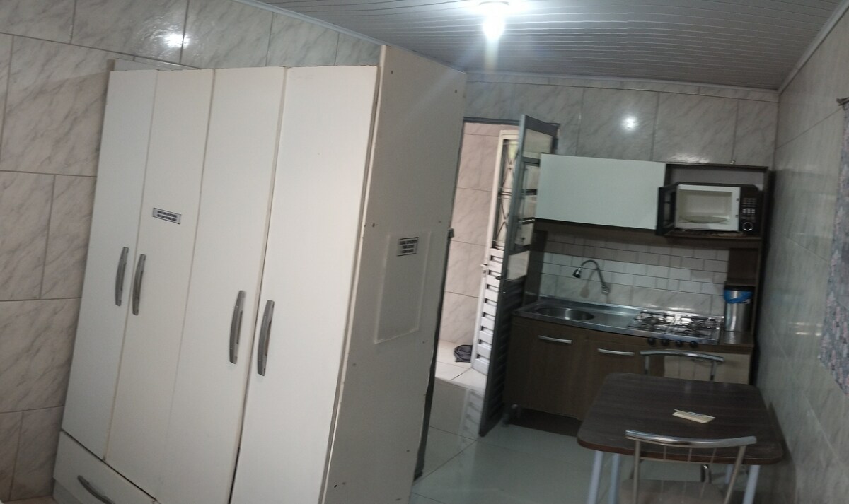 Aconchegante espaço para quem precisa comodidade e fácil acesso às rodovias. Localizado na cidade de Portão/RS. Cozinha equipada com utensílios, pia, fogão, geladeira, mesa, cadeiras, Wi-Fi, ventilador, aquecedor, secador de cabelo, roupas de cama e banho, tomadas na cabeceira da cama. No mesmo pátio da casa da família, com toda a privacidade de um espaço exclusivo para os hóspedes, com estacionamento. Incluindo café da manhã. Um quarto com cama de casal e opção de colchão extra.