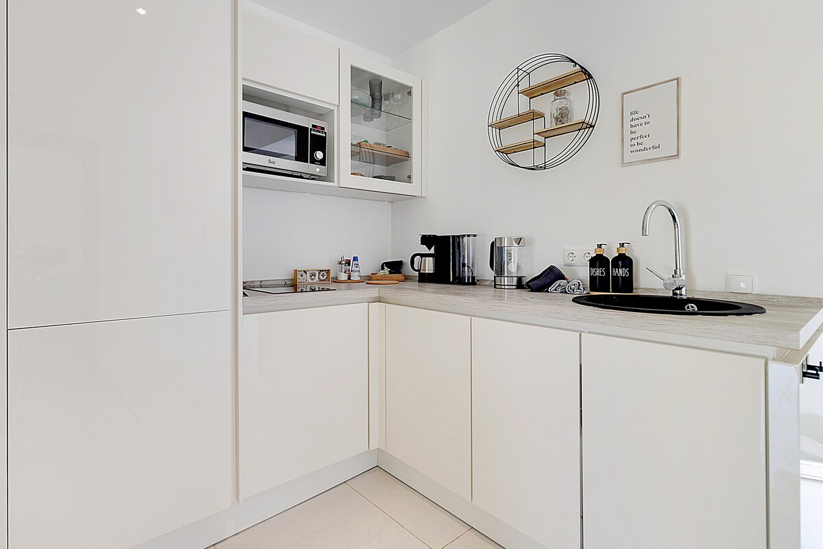 Ժամանակակից բնակարան 3 աստղանի հյուրանոցում, որը նայում է դեպի ծովը ։ Շատ զվարճալի ՝ մեծ պատշգամբով և արևի շողերով ամբողջ օրվա ընթացքում ։ Լիովին պատրաստ է ձեր այցելությանը ՝ կահավորված խոհանոցով, սառնարանով, միկրոալիքային վառարանով և այն ամենով, ինչ անհրաժեշտ է եփելու համար, ինչպես նաև աղով ։ Սենյակը ՝ երկտեղանի մահճակալ 2 հոգու համար, և բազմոցով սենյակ ՝ ևս 2 - ական մեկտեղանի մահճակալով ։ Լողափից ընդամենը 5 րոպե հեռավորության վրա ՝ կայանատեղիով, այդ թվում ՝ մեքենայի համար ։