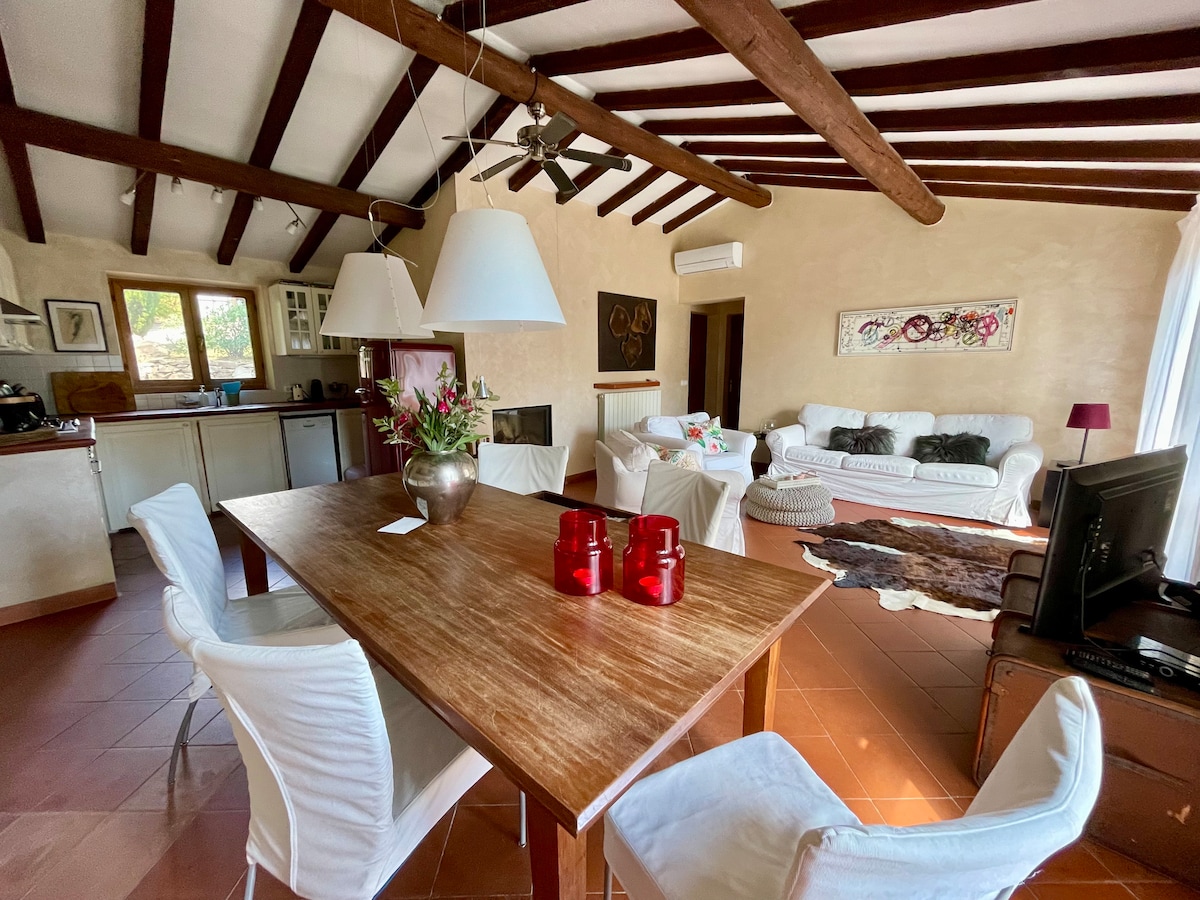Տանից բացվում է ապշեցուցիչ տեսարան դեպի ծով, երկու նավահանգիստներ, լեռներ և իսպանական ամրոց: Առաջին հարկում ՝ հյուրասենյակ ՝ հեռուստացույցով և օդորակիչով, լավ կահավորված խոհանոց ՝ փոքր կտուրով, հիմնական ննջասենյակ ՝ օդորակիչով և լոգասենյակով, երկրորդ սենյակ ՝ երկտեղանի մահճակալով և լոգասենյակով ։ Վինտաժային աստիճաններով կարող եք հասնել մեզանին ՝ փոքրիկ լոգասենյակով և երկու հարմարավետ երկտեղանի մահճակալով ։ Մեծ տեռասում կարող եք վայելել ձեր կերակուրները: Մուտք դեպի լողավազան (հունիսի 15 - ից) և կայանատեղի ։