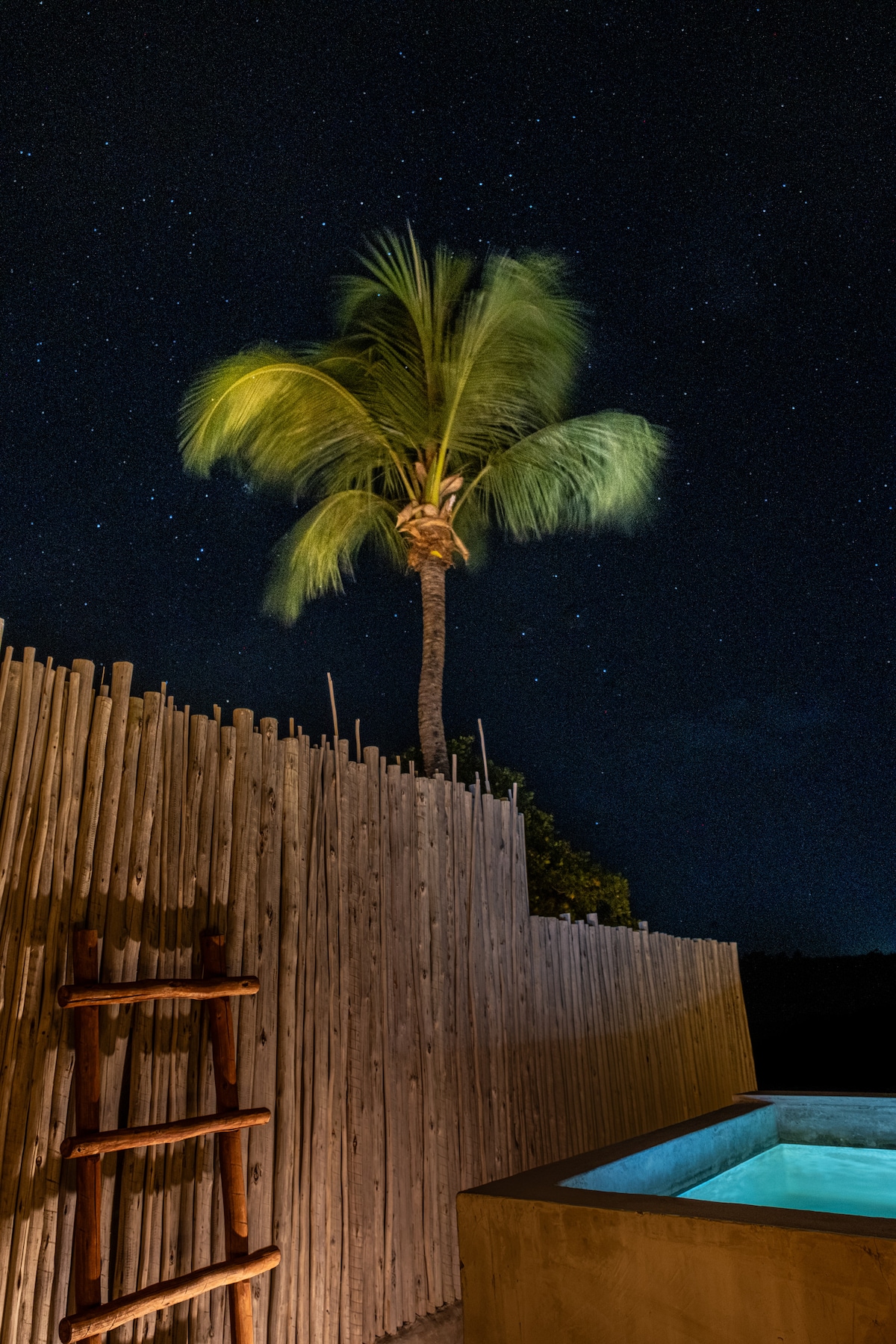 O Bangalô beira mar é de madeira, com um coqueiro dentro do quarto. É a nossa suíte mais próxima do mar. Aqui você dorme escutando o barulho das ondas. A suíte é ideal para 2 pessoas, mas acomoda 3 com tranquilidade.