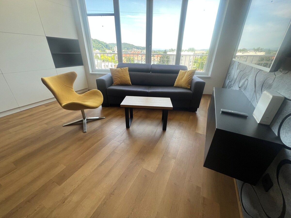 Վայելեք մի բաժակ գինի ՝ պատշգամբից բացվող բացառիկ տեսարանով դեպի հին քաղաքը և դղյակ բլուրը: Նոր վերանորոգված ստուդիական բնակարանը գտնվում է Պրեսեռնի հրապարակից ընդամենը մեկ րոպե հեռավորության վրա ։ Ձեզ դուր կգա տարածքի ֆունկցիոնալ հատակագիծը, կոկիկ և լուսավոր լոգասենյակը, հիմնական, բայց ժամանակակից խոհանոցը ։ Նոր ճարտարապետության և հնաոճ իրերի հմայիչ խառնուրդը, ինչպես նաև նախկին Հարավսլավիայի կարմիր թավշյա վարագույրն ու օրիգինալ ճենապակը ձեր այցին ռոմատիկ տպավորություն կթողնեն: Տեղյակ եղեք. զբոսաշրջային հարկը ներառված չէ գնի մեջ ։