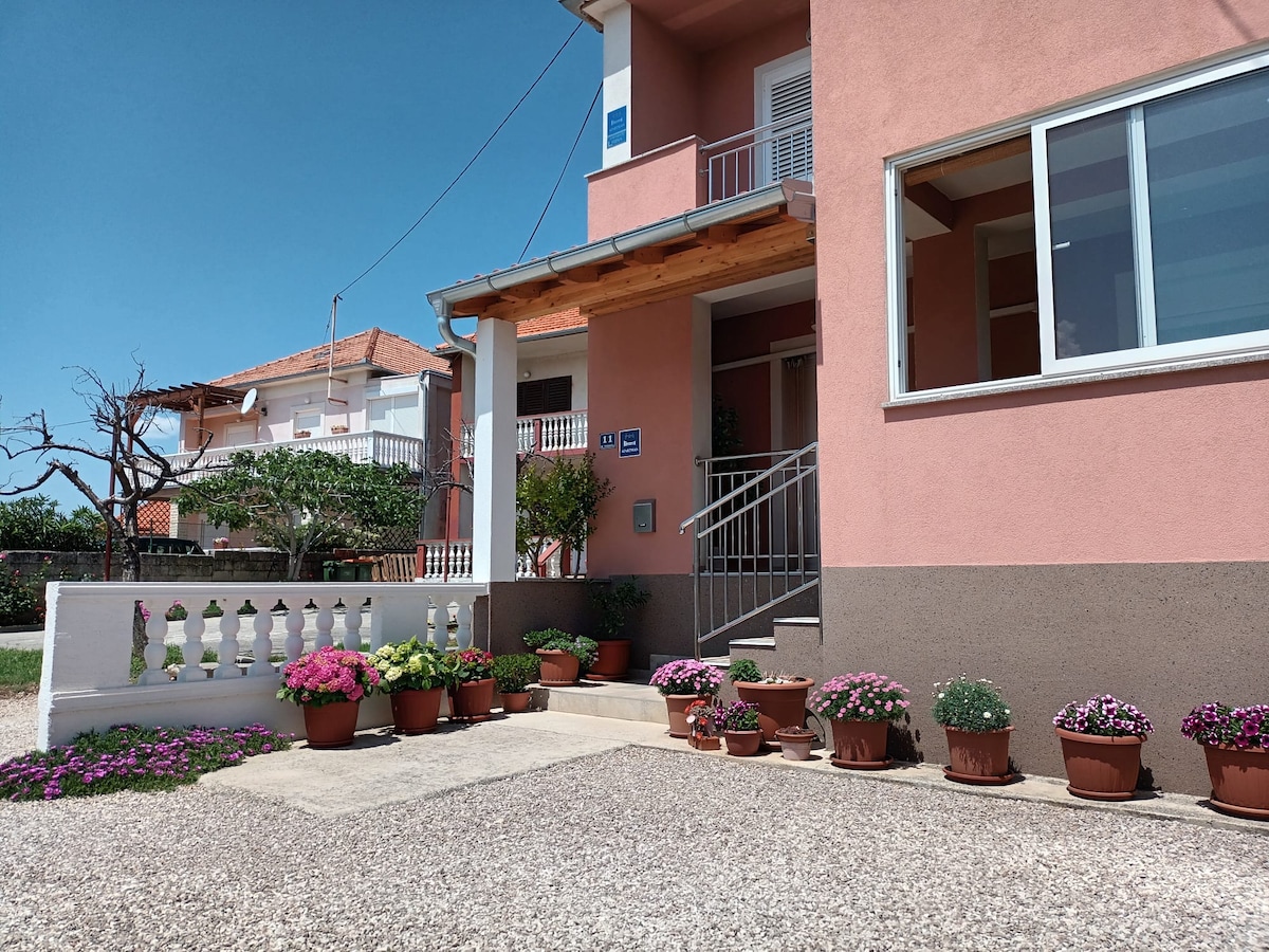 Apartman OLIVE se sastoji od dvije spavace sobe ,kuhinje dnevnog boravka,wc-a kupatilo i sa dva velika balkona.U blizini apartmana se nalazi market,kafic,plaza,restoran udaljen 5km,grad Zadar sa svojim znamenitostima :forum,crkva sv.Donata,morske orgulje,pozdrav suncu,je udaljen 20km,nacionalni park Paklenica 20km,rijeka zrmanja 20km,pogled na otok Pag,na planinu Velebit i puno toga.Apartman moze primiti 4 odrasle osobe +dijete (djeciji krevetic)