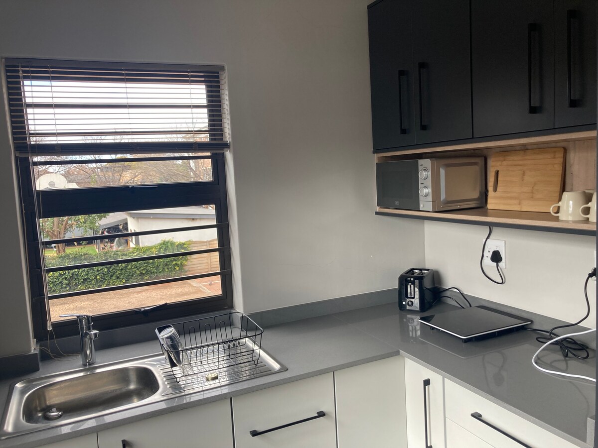 Հաճելի բակային բնակարան NWU - ին մոտ գտնվող հանգիստ թաղամասում և մարզահրապարակներում և Առողջության և մարդկային գործունեության կենտրոնի մոտ ։ Ինքնասպասարկման կացարան ՝ հիանալի փոքրիկ խոհանոցով և լոգասենյակով ։ Այս սենյակը կարող է հյուրընկալել 2 հոգու, որոնք կիսում են երկտեղանի մահճակալը ։ Նստատեղի տարածք բակում ՝ շատրվանի մոտ ։ Լրացուցիչ բացօթյա նստատեղեր սեփականության դիմացի պարտեզում ։ Այն ունի փոքրիկ գրասեղան և Wi - Fi նրանց համար, ովքեր պետք է որոշակի աշխատանք կատարեն: