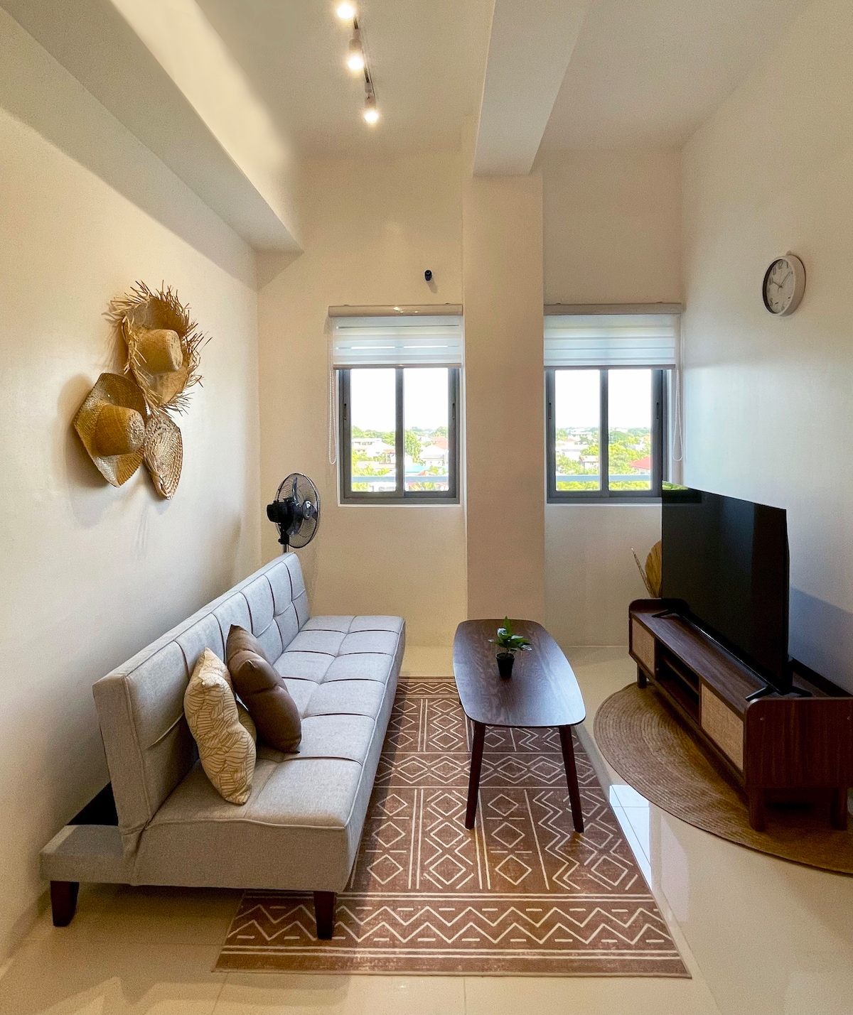Բարի գալուստ Oasis In Style ։Հյուրանոցային սենյակի ոգեշնչված հարկաբաժին, որն առաջարկում է հանգիստ, հարմարավետություն և անսահման հանգիստ քաղաքում: Ոտքով 3 րոպե քայլեք SM City Mall - ում: Վայելեք գնումներ կատարելու,ճաշելու և զվարճանալու հարմարավետությունը Իլոյլո Սիթիի աղմկոտ Սիրո քաղաքից մի քանի քայլ հեռավորության վրա: Իդեալական է 2 -3 պաքսի համար ՝ ամբողջ չափի մահճակալով և թախտով, լիովին կահավորված խոհանոցով,ժամանակակից լոգասենյակով ՝ տաք ջրատաքացուցիչով, 65 դյույմ Google հեռուստատեսությամբ ՝ Netflix - ով, օդորակիչով և օդափոխիչով, գերարագ ինտերնետով, լողավազանով և անվճար կայանատեղով ։