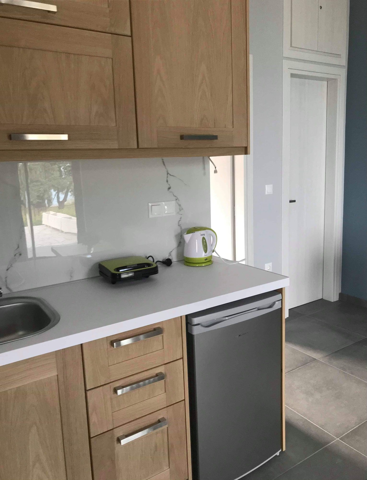 154 քմ մակերեսով երկհարկանի տուն ծովի ափին ՝ Սամպատիկի Արկադիա բնակավայրում ։ Այն գտնվում է Լեոնիդիոյից 5 կմ հեռավորության վրա (մեքենայով մոտ տասը րոպե )։ Այն ունի 3 ննջասենյակ առաջին հարկում (2 ննջասենյակ ՝ երկտեղանի մահճակալով և 1 ննջասենյակ ՝ երկու մեկտեղանի մահճակալով), ինչպես նաև երկու լոգասենյակ ։ Այն ունի լիովին կահավորված խոհանոց, հարմարավետ հյուրասենյակ և ճաշասենյակ ։ Տունն ամբողջությամբ օդորակված է ։ Այն ունի երկու ծածկված տեռաս, որոնք նայում են դեպի ծովը և մեծ այգի ։ Անվճար Wi - Fi - ի օգտագործումը հասանելի է տան հյուրերին ։