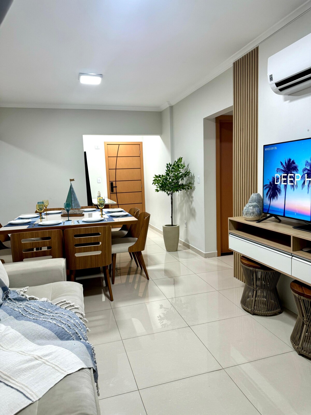 Մնացեք ԾՈՎԻ երեսին ԳՏՆՎՈՂ այս հարմարավետ բնակարանում ՝ 3 առանձնաբաժնով, լայն պատշգամբով ՝ մանղալով, հյուրասենյակ ՝ հեռուստացույցով, նրբաճաշակ ճաշասենյակ, խոհանոց և լվացքասենյակ (լվացքի մեքենայով և հագուստի գծով, ավտոտնակ ՝ 2 մեքենայի համար ։ Հարմարավետություն և հարմարավետություն մեկ վայրում ։ Ամրագրեք հիմա և վայելեք անմոռանալի պահեր: Շենքում առկա են Brinquedoteca - ն և quadra - ն ։