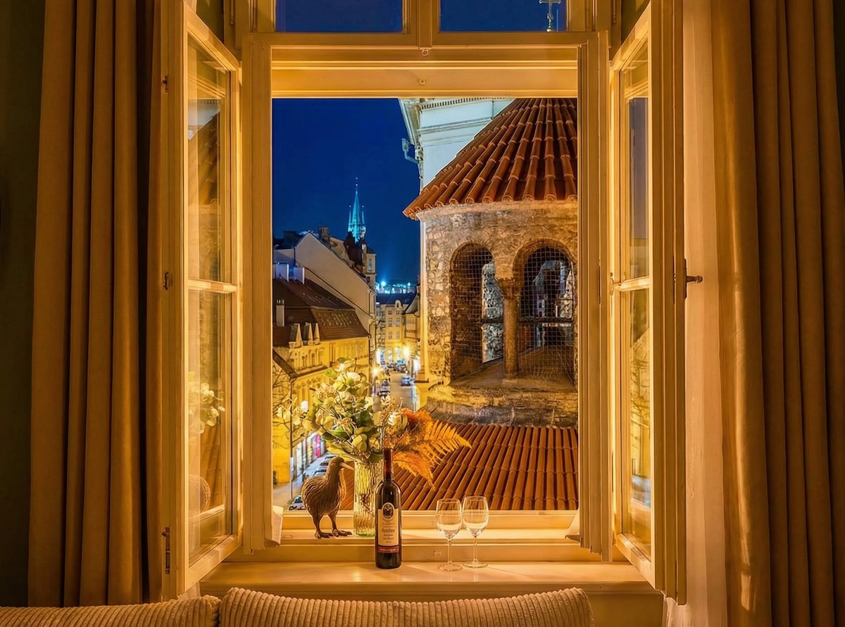 Արթնացեք և հյուրասենյակից հիանացեք Պրահայի պատմական Հին հրեական գերեզմանատան հազվագյուտ տեսարանով։ Գտնվում է Հին քաղաքի սրտում՝ Կառլովի կամրջից և Հին քաղաքի հրապարակից մի քանի քայլ հեռավորության վրա, որտեղից կարող եք ոտքով ուսումնասիրել քաղաքը։ Ննջասենյակը նայում է դեպի խաղաղ փողոց, ինչը երաշխավորում է հանգիստ գիշերային քուն քաղաքի կենտրոնում։