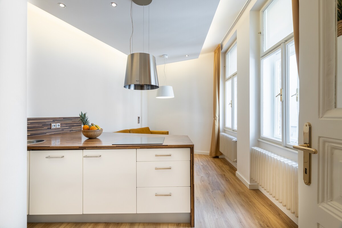 Բարի գալուստ Հին քաղաքի սրտում գտնվող մեր շքեղ նորաոճ բնակարան ։ Ընկղմվեք քաղաքի հարուստ պատմության մեջ ՝ ուսումնասիրելով այնպիսի հիմնական տեսարժան վայրեր, ինչպիսիք են հանրահայտ Օռլոջ ժամացույցը և Չարլզի կամուրջը ՝ երկուսն էլ ընդամենը մի քանի քայլ հեռավորության վրա ։ Զբաղվեք ինչպես պատմական, այնպես էլ ժամանակակից ոլորտներից լավագույնը ՝ բարձրակարգ առևտրի փողոցներով, համեղ սրճարաններով, ռեստորաններով և աշխույժ ակումբային թաղամասով ՝ ապահովելով հարմարավետության և ոգևորության կատարյալ հավասարակշռություն ։
