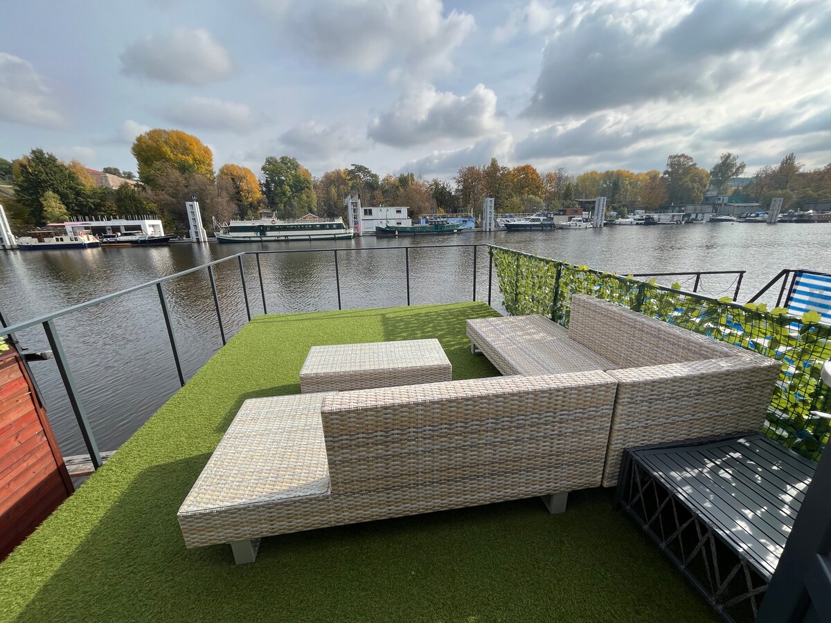 New houseboats just waiting for you! Beautiful new houseboat in luxury design, rooftop seating, hassle free parking. We have a barbecue ready for you and your friends on the shore. Come and enjoy your free time in our bay just 200m from the tram stop and 15 minutes to the center of Prague!