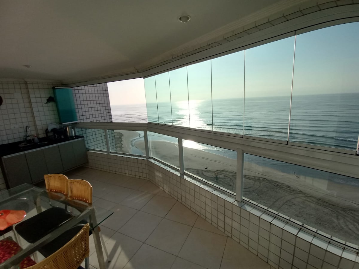 Vista frente mar total maravilhosa em um lindo apartamento decorado frente mar total 2 dorms, (1 suíte). Ar condicionado. O mais belo e encantador nascer no sol, juntamente com o delicioso barulho do mar! Você irá sentir uma paz e ficará encantado com essa experiência! Além disso tenha o privilégio de presenciar o pôr do sol frente mar numa sala de estar e jantar linda com ar condicionado, móveis de altíssima qualidade, tvs smart, cafeteira Nespresso, cozinha completa com fogão indução.