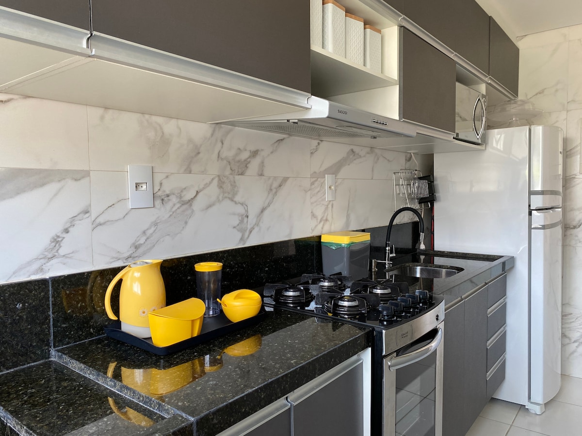 Welcome to your sophisticated seaside retreat! This apartment features 2 air-conditioned suites, a spacious living room with smart TV, and a fully equipped kitchen to provide an unforgettable experience. In the common areas, enjoy a refreshing swimming pool, modern gym, and an exclusive coworking space. Just steps from the beach, you'll find luxury, comfort, and breathtaking views. Book now and experience memorable days in Ilhéus!