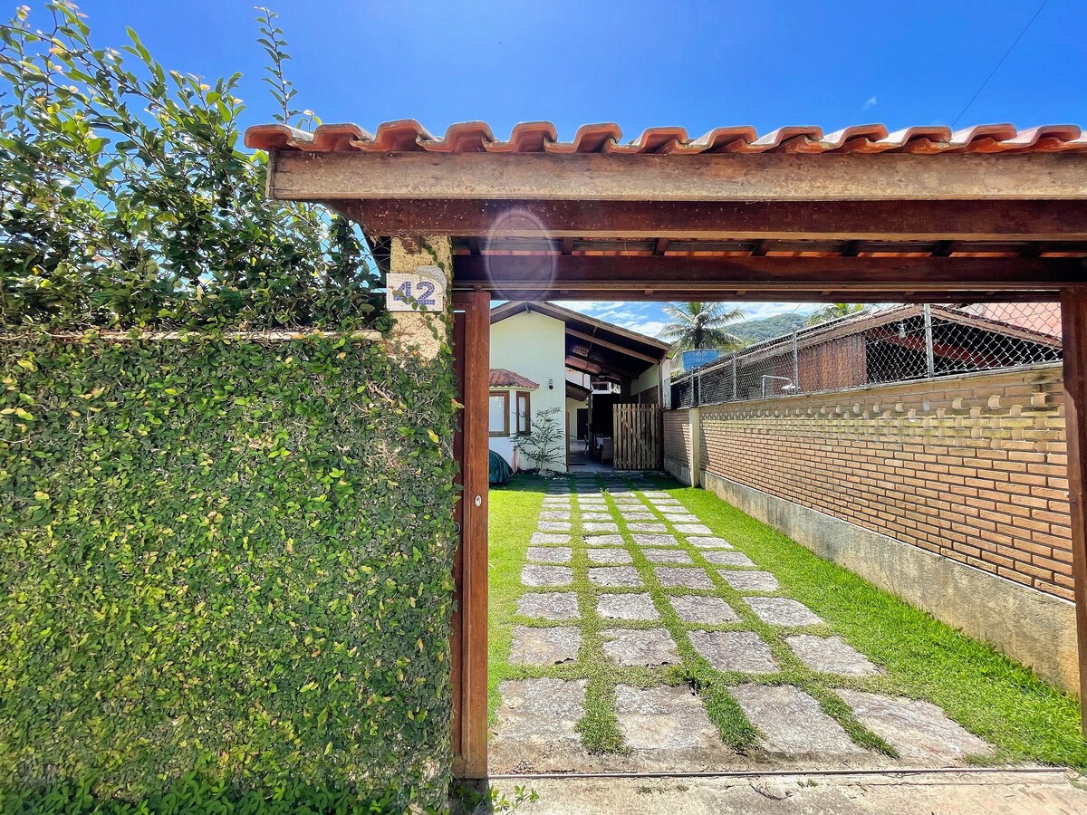 Projeto de Carlos Lemos, nossa casa é térrea, espaçosa, e super iluminada. Situada num terreno com vista privilegiada para o mar e as montanhas. Está cercada pela mata atlântica, com poucos vizinhos, à cerca de 500mts da praia. A casa é bastante equipada com uma cozinha e lavanderia completas, e tem internet rápida (100Mb) com wi-fi em todos os ambientes. A sala de estar tem lareira e a varanda área externa é bastante ampla com deck, redes e churrasqueira portátil.
