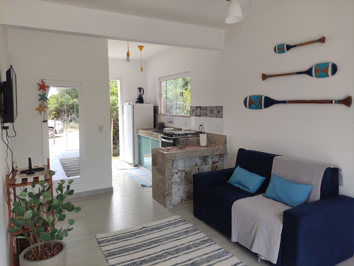 Casa para até 5 pessoas: 1 quarto com ar condicionado cozinha completa estacionamento smart tv + wi-fi churrasqueira kit praia *roupas de cama e toalhas de banho são fornecidas Estamos a 17km do Centro de Arraial do Cabo Alguns passeios buscados por nossos hóspedes: 8km Caminho de Moisés (Ponta do Alcaíra) 14km Praia do Pontal 15km Prainha 17km Praia Grande 17km Praia dos Anjos 22km Pontal do Atalaia 20km Praia do Forte 21km Rua dos biquinis Seu animal de estimação é super bem vindo!