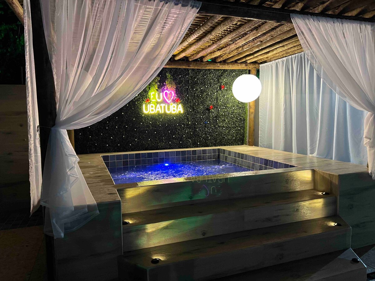Casa de Ubatuba բնակելի թաղամասում, Մատա Ատլանտիկայի մեջտեղում ։ 4 ննջասենյակով տուն, 1 առանձնաբաժին, 3 լոգասենյակ, մեծ սենյակներ ՝ 240 մ² մակերեսով ։ 550 մ² այգի ՝ մանղալով, ջակուզիով, ծածկված կայանատեղիով ։ Դռնապանով թաղամաս, կենտրոնական տեղադրություն, բայց Ուբատուբայի հիանալի շարժումից դուրս ։ Մոտակայքում գտնվող սուպերմարկետ, 1,500 մ ։ Իդեալական տուն այն ընտանիքների համար, որոնք ներդաշնակություն են փնտրում բնության հետ և վայելում են հարմարավետությունն ու տարածքը ՝ Ատլանտյան անտառից և Սերրա դու Մարից բացվող տեսարանով ։