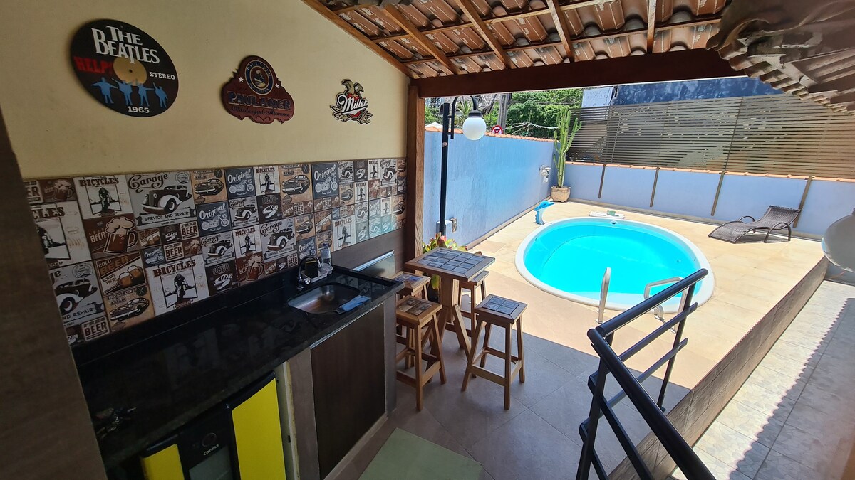 KAIRÓS DE ITAÚNA Մեր տունը գտնվում է Saquarema - ի կենտրոնից 300 մետր հեռավորության վրա և ունի հեշտ մուտք դեպի տեղական ռեստորաններ, բարեր և տեսարժան վայրեր, դուք կարող եք քայլել ՝ օգտվելով և ՛ ծովածոցից, և ՛ լողափից, որը հայտնի է սերֆինգով: Ճանապարհային ճանապարհ 1001 և շուկա 100 Mts da casa - ում Casa - ն հարմարավետորեն ընդունում է մինչև 10 հյուրի ։ Կահավորված խոհանոցով և հյուրասենյակով բաց կոնցեպտ ՝ հարմարավետ և իդեալական սոցիալականացման համար ։ Զգացեք ձեզ ինչպես տանը ՝ վայելելով Saquarema - ի լավագույն վայրերը