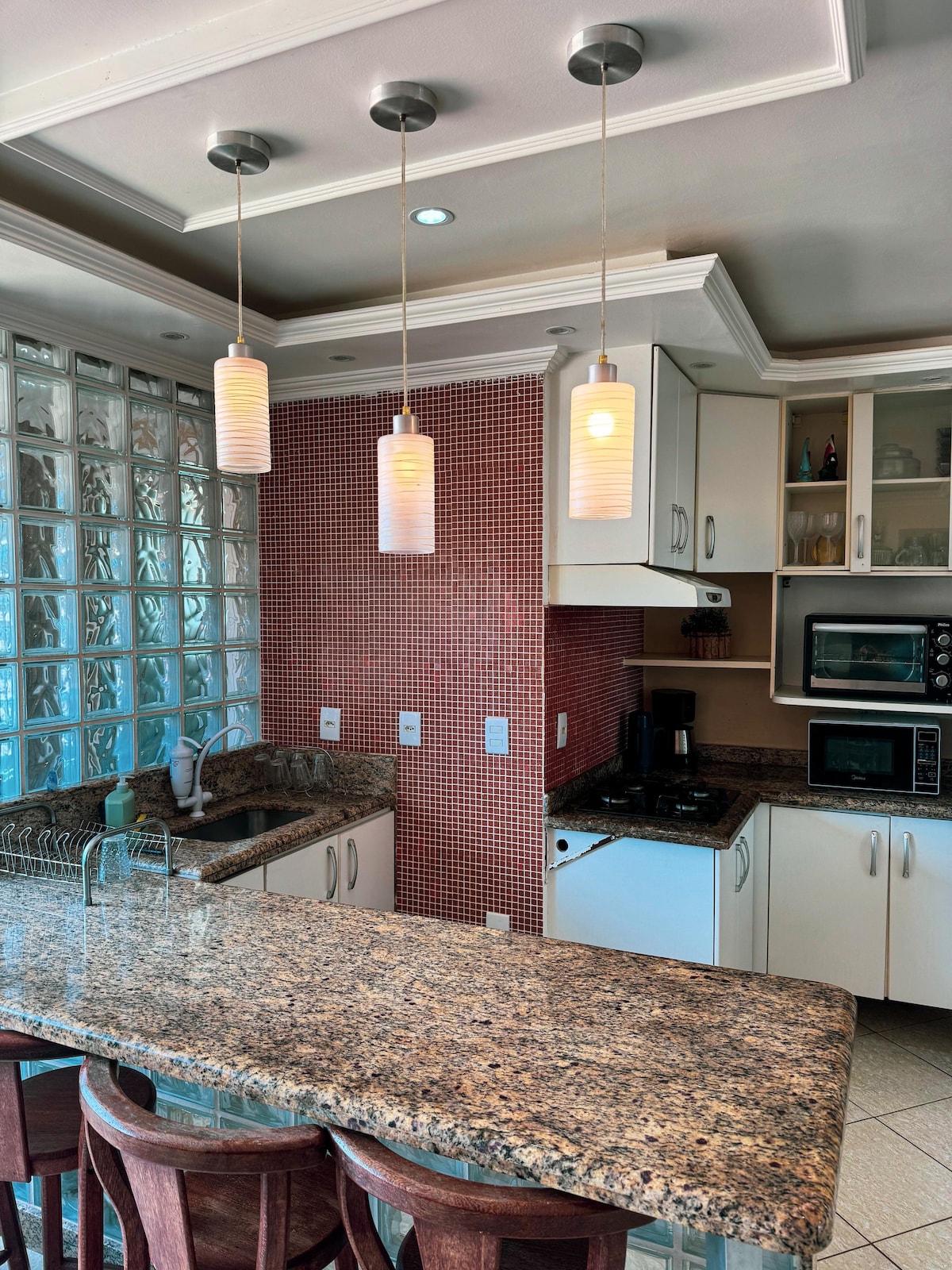 Տուն 450մ2 մակերեսով մեծ մասնավոր հողատարածքում ՝ բաց հայեցակարգով, հանգստի գոտին արտոնելով: Բացօթյա տարածք - U - աձև ծածկված պատշգամբ ՝ բացօթյա հեռուստացույցով, մանղալով/բարով, ճաշասենյակով, բացօթյա զուգարանով և 2 ցնցուղով, քաղաքի կենտրոնում գտնվող լողավազան ՝ երեխաների անվտանգության համար նախատեսված ցանցով: Փակ տարածք - 3 ննջասենյակ ՝ օդորակիչով, 1 լյուքս: - 2 փակ լոգասենյակ - Խոհանոց (սառնարան, գազօջախ, միկրոալիքային վառարան և սպասք) - Sala interna de TV Ինտերնետ WIFI na casa