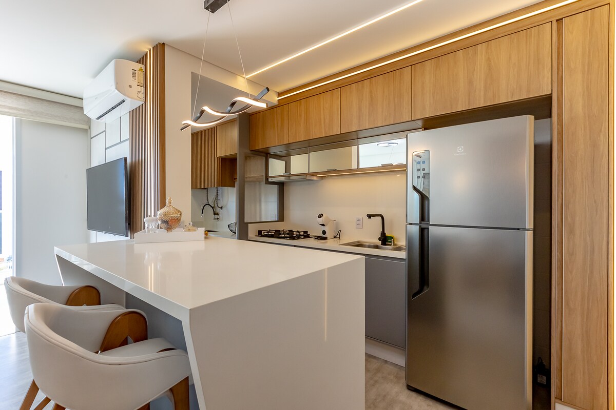 🏖️ Resort Amenities + Beach + Beto Carrero The most desired Home Club in the area. Enjoy unique moments with direct access to Piçarras Blue Flag Beach in a true oceanfront apartment (120 m²) with incredible views. Comfortably hosts up to 8 guests with 3 air-conditioned bedrooms, equipped kitchen, BBQ grill, living room, fast Wi-Fi and smart lock. 🚗 2 covered parking spaces (fits large pickup trucks).