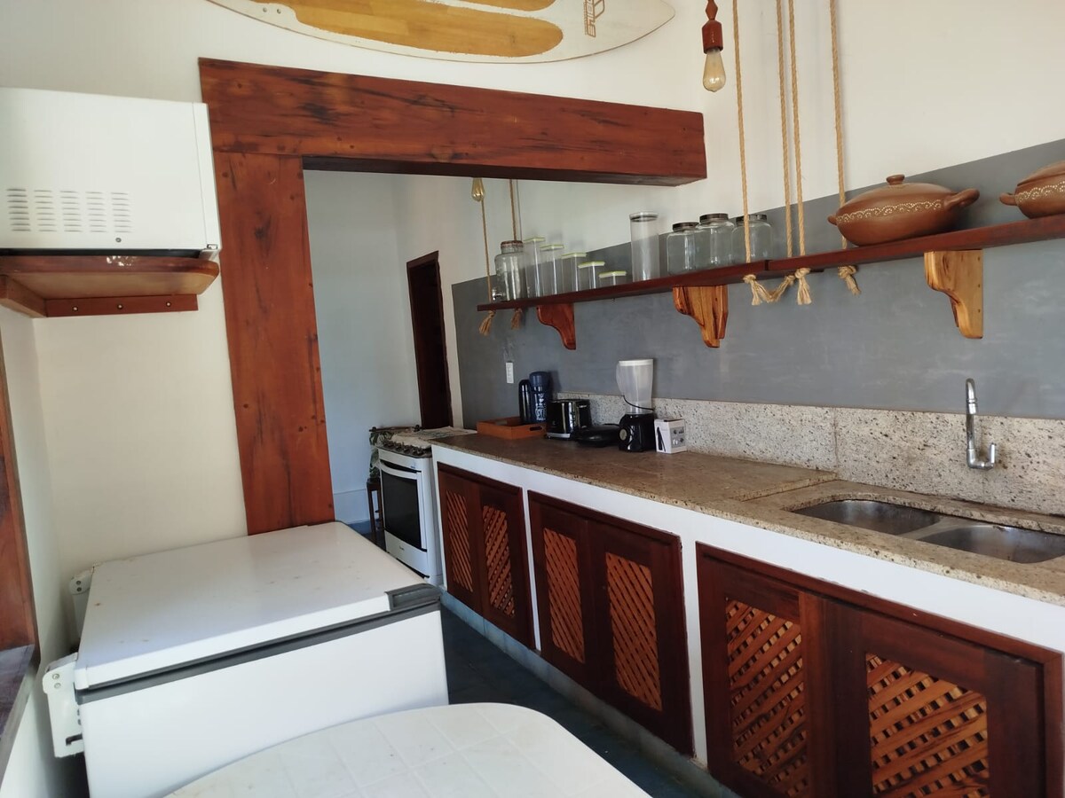 At Casa Sabiá you will relax to the sound of the sea and the singing of birds. Enjoy the incredible sea view. From the kitchen, living room and balcony, the landscape will surprise you. Ideal for families and friends who like to cook or have a barbecue, our kitchen is equipped with everything you need to enjoy these moments. The internet is high-speed, ideal for studying, working and watching a series or movie.