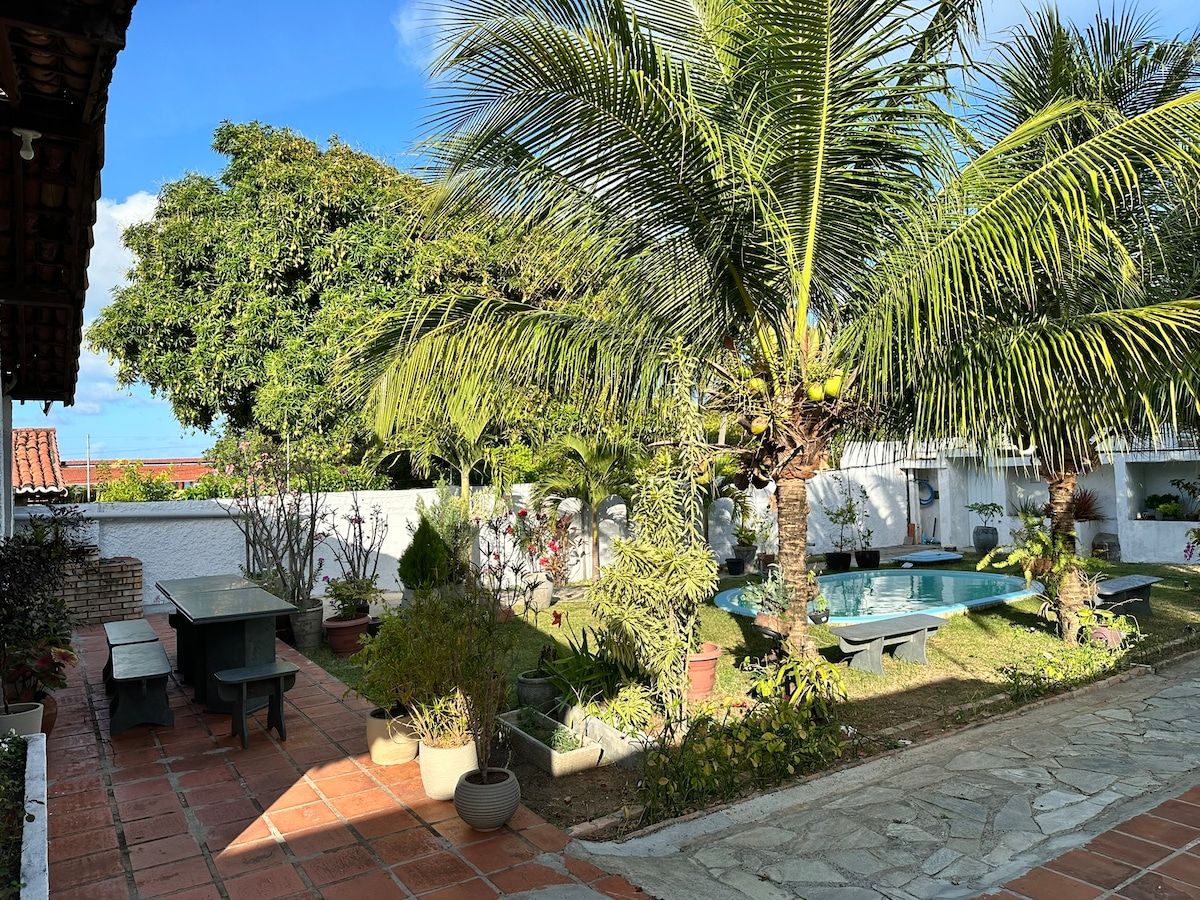 Solar Santa Felicidade - ը կատարյալ հանգիստ է ընտանիքների և ընկերների համար, որոնք գտնվում են աշխարհի ամենամեծ քեշյու ծառի դիմաց ՝ Պիրանգի դու Նորտի (ՌՆ) դրախտային լողափում ։ 4 ննջասենյակով (3 առանձնաբաժին), մանղալով, լողավազանով, Wi - Fi - ով, օդորակիչով, ամբողջական խոհանոցով և առաջադեմ անվտանգությամբ ՝ տունն առաջարկում է հարմարավետություն և ժամանց ։ Լողափից 1 րոպե հեռավորության վրա և տեղական շրջագայություններին ու ռեստորաններին մոտ, այգու հմայքն ու հարմարավետությունը հիշարժան են դարձնում ձեր հանգիստը: Իդեալական տարածք ՝ ձեր սիրելիի հետ վայելելու համար: