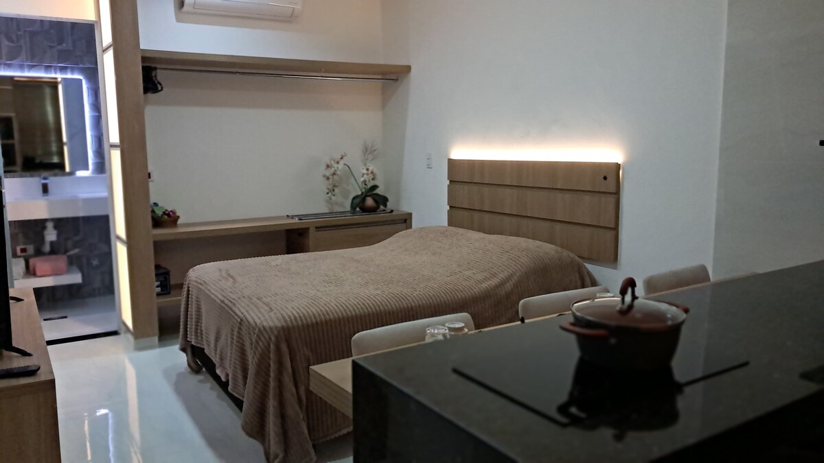 Studio - 500m Praia Massaguaçu com Piscina