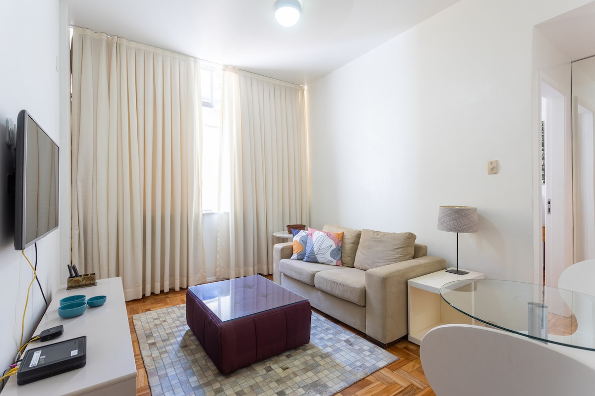 *Please read the house rules before booking.* Welcome to your perfect Rio getaway, where the authentic essence of Rio meets comfort and good taste. Just a few steps away from 3 of the most famous beaches in the world: Copacabana, Arpoador and Ipanema. Its location is really perfect! It’s equipped w/ 2 split A/C wifi 350mb queen size bed E-lock for self check in equipped kitchen 32" smart TV Levee chair (for beach or park) Hammam-style Beach towels Book now and enjoy your stay with us.