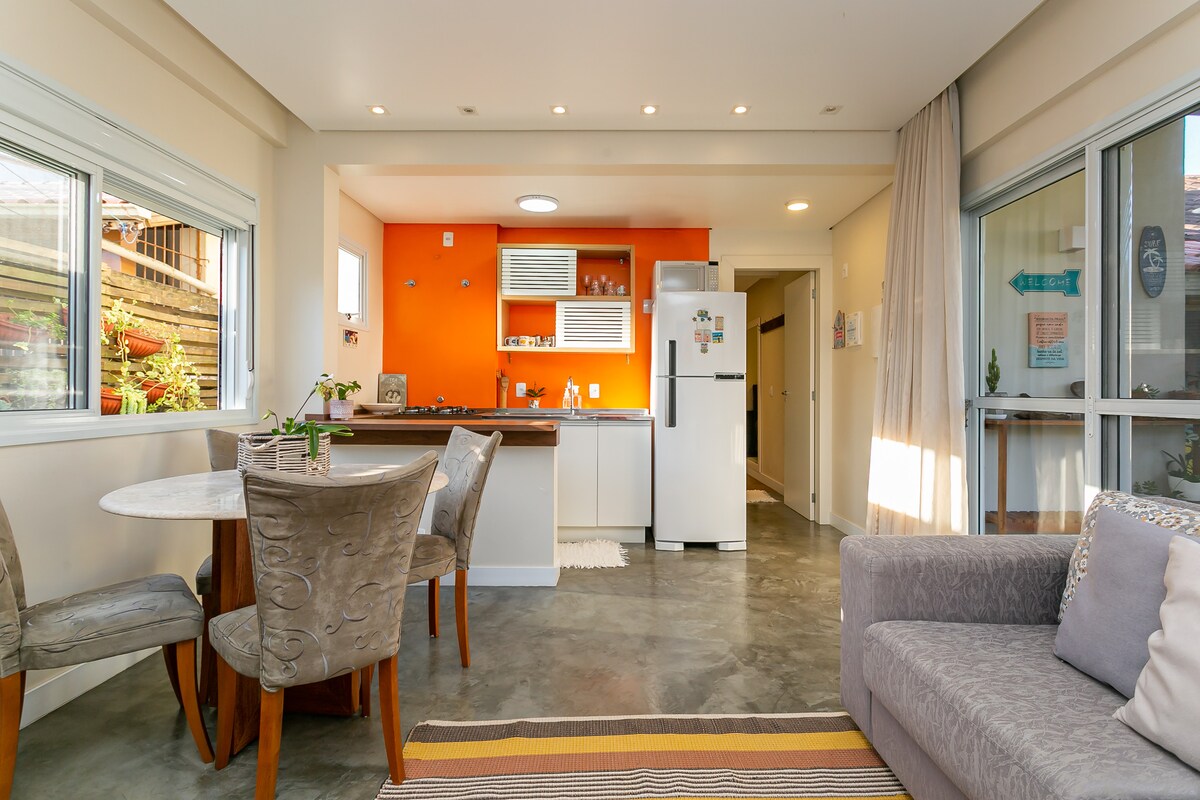 1. Կառուցվել է տարբերակված այց ապահովելու համար: Casa Jardim - ը կիսում է տանտիրոջ տան հետ կայանատեղիի հետ միասին: Այն 27 քառակուսի մետր մակերեսով կացարան է, երկտեղանի մահճակալ և կահույքի ու դետալների ողջ հարմարավետությունը ։ Այն գեղեցիկ և լիովին մասնավոր այգու մի մասն է, որտեղ հյուրը կարող է վայելել բացօթյա հանգիստը, և որտեղից կարելի է նաև լսել ծովի ձայնը ՝ Տեղակայված է լայն փողոցներով, հանգիստ և անվտանգ թաղամասով ։ 10 թաղամաս ամբողջական առևտրային կենտրոնից: Լողափից 350 ՄԵՏՐ ՀԵՌԱՎՈՐՈՒԹՅԱՆ վրա!!!