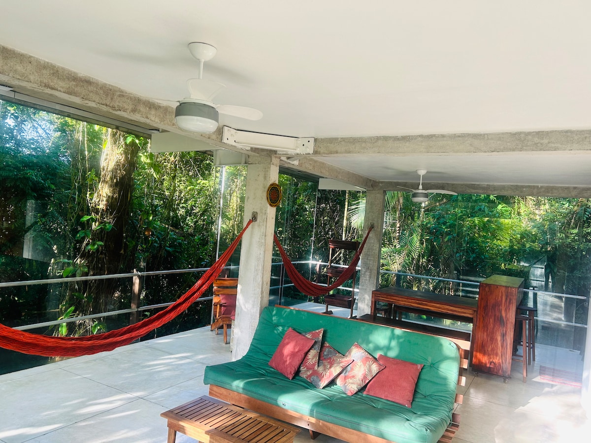 Համտեսեք բնական աղբյուրի ջրի թարմացնող բաժակ, հետո ընկղմվեք մեկուսի բնական լողավազանի մեջ ՝ անտառի սրտում գտնվող այս բնության ոգեշնչված, ճարտարապետական գլուխգործոցում ։ Ընտրեք բանան, փնտրեք կապիկներ և դիտեք, թե ինչպես են կապույտ թիթեռները նույնպես թռչում ։ Գտնվելով Ալդեա Ռիզոմայի էկոլոգիական կոնդոմինիումում (Պարատի դոութաունից 15 -25 րոպե հեռավորության վրա )՝ տունը շատ հարմարավետ է, լիովին կահավորված և ունի Starlink ինտերնետ կապ ։