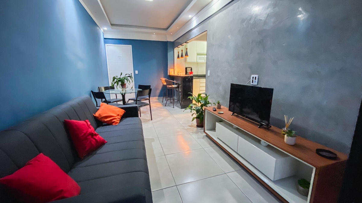 60 մ2 ամբողջական օդով և լողավազանով բնակարան, որը հիանալի է ընտանիքի, ընկերների և տնային կենդանիների հետ հանգիստ ուղևորության համար ։ Էնսեադա լողափից 7 րոպե հեռավորության վրա և Պրայա դա Պիտանգուեյրասին մոտ ։ Անվճար մուտք դեպի տանիքի լողավազան և մանղալ, հանգստի գոտի և մանկական խաղահրապարակ ։ AP - ն լավ է գտնվում և գտնվում է գլխավոր պողոտայում ՝ շուկաներին, ռեստորաններին, տոնավաճառներին և լողափերին մոտ Բնակարանն ունի ՝ - Առանձին կայանատեղի - Խոհանոցային պարագաներ - Երկրպագուներ ։ - Օդորակում: - Wi - Fi