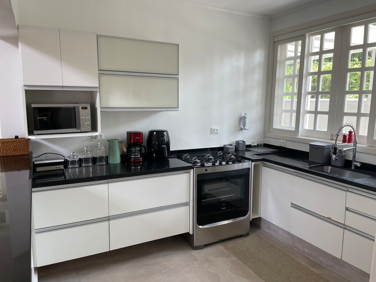 Luxury house in a gated community, on a dead-end street, with 24-hour security, parking for 3 cars, comfortably accommodates up to 10 people in 4 spacious suites. Air conditioning in all rooms, blackout curtains, and a home office desk, private outdoor deck with lighting, landscaping, and private barbecue. The condominium offers an adult pool, children's pool, multi-sports court, tennis court, playground, games room, and beach service, all for your peace and comfort.