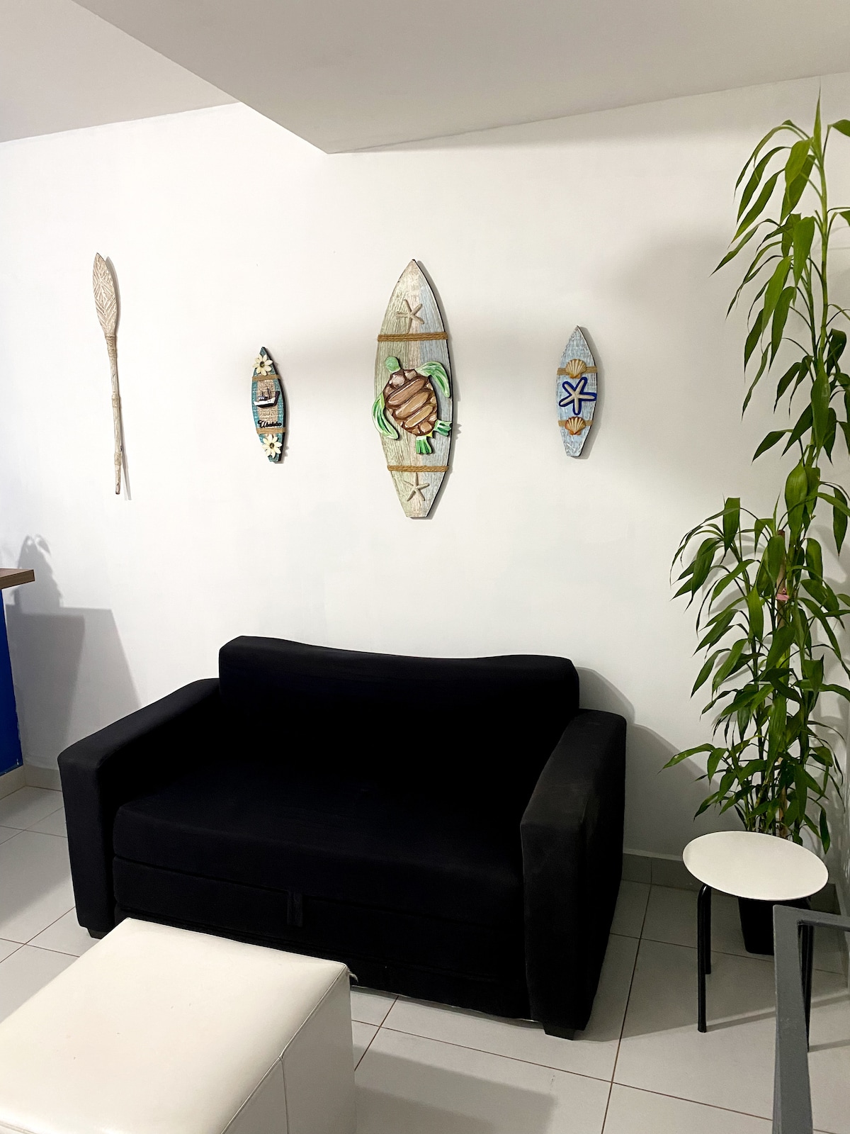 Minimalist style chalet, located on the first floor of a small gated community with a charming internal courtyard, pool, barbecue area, and a parking space in the internal parking lot with an automatic gate. Between Praia do Saco da Ribeira, Sununga, and Lázaro. Comfort and security for you! * 9,000 BTUs air conditioning in the bedroom and 12,000 BTUs in the living room.