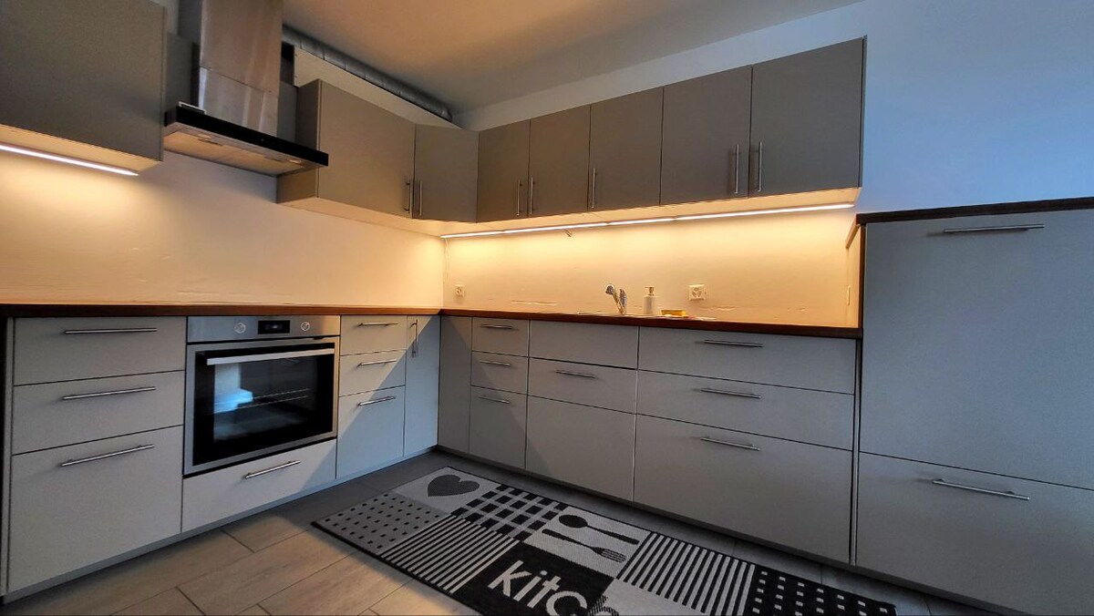 Բոլորովին նոր բնակարան, որը կառուցվել է միայն 2024 թվականի նոյեմբերին պատմական շենքում ։ Շինարարության շատ շքեղ ստանդարտ ՝ շոգենավով, մեծ սառնարանով և ինդուկցիոն սալօջախով ։ Հարմարավետ բուխարի ։ Հատակով ջեռուցում ամենուրեք, ինչպես նաև շատ մեծ լոգարան, առանձին լվացքի մեքենա և չորանոց ։ Բացի այդ, գնի մեջ ներառված է կողպվող ավտոտնակ ։ Կլոստերս Պլաց քաղաքի սրտում գտնվող բնակարանը երկաթուղային կայարանից և գնումների տարբեր տարբերակներից ոտքով հեռավորության վրա է ։ ԴԱՓ-ի ընթացքում՝ առնվազն 5 գիշեր