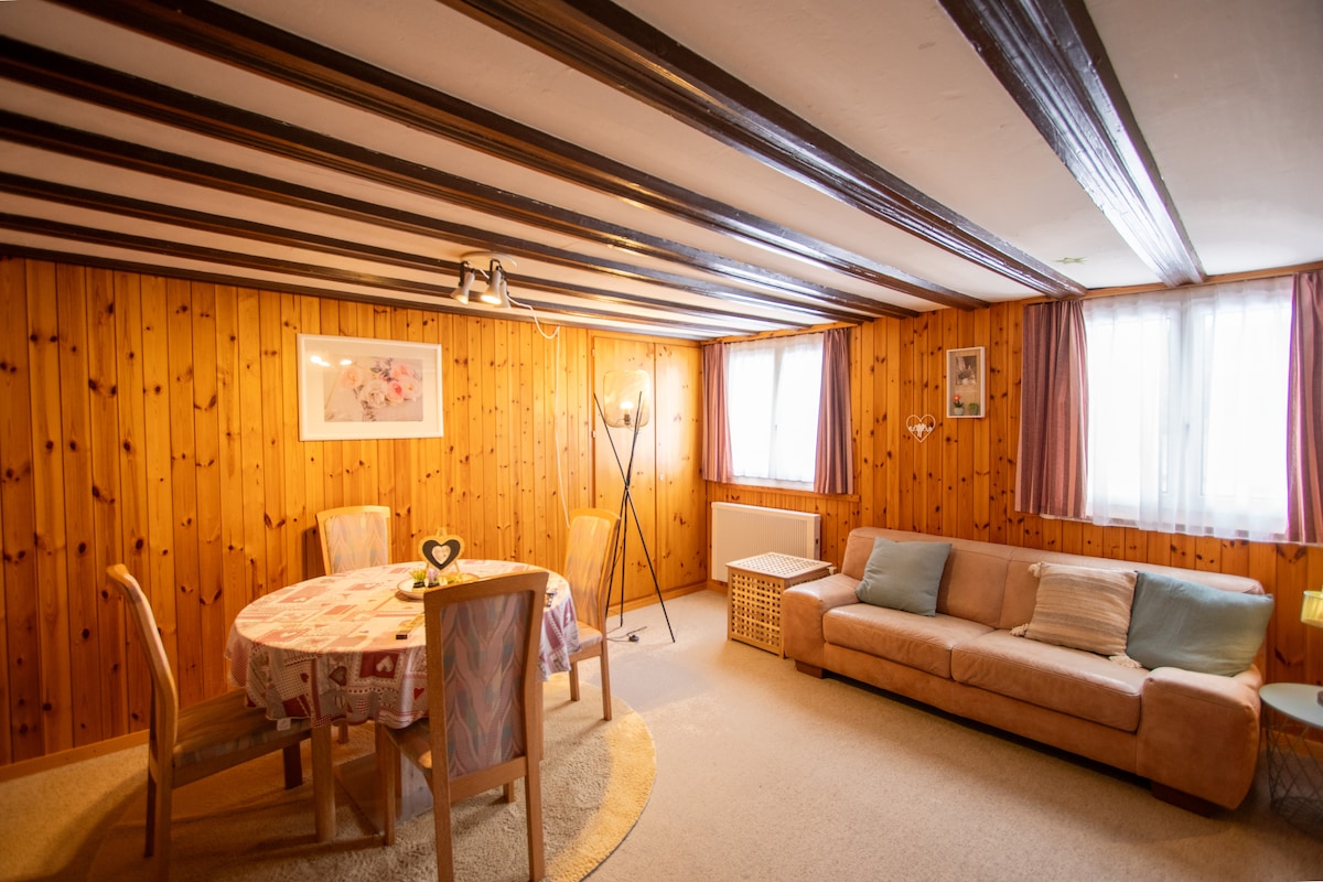 Բնակարանը գտնվում է 1937 թվականին կառուցված Walserhaus - ի բարձրացված առաջին հարկում և նրբորեն վերանորոգվել է 2019 թվականին ։ 80 - ականների հմայքը պահպանվել և համալրվել է ժամանակակից ժամանակների տարրերով ։ Ըստ ավանդական շինարարության (ընտանեկան տան )՝ տունը ձայնամեկուսիչ չէ ինչպես դրսից, այնպես էլ ներսից ։ Դա նշանակում է, որ սենյակակիցները ճշտապահ (երբեմն ավելի շատ, երբեմն ՝ ավելի քիչ)լսելի են ։ Ուստի խնդրում ենք համապատասխան վարձակալներին լինել ուշադիր և մի փոքր ավելի հանգիստ լինել պարելիս:)
