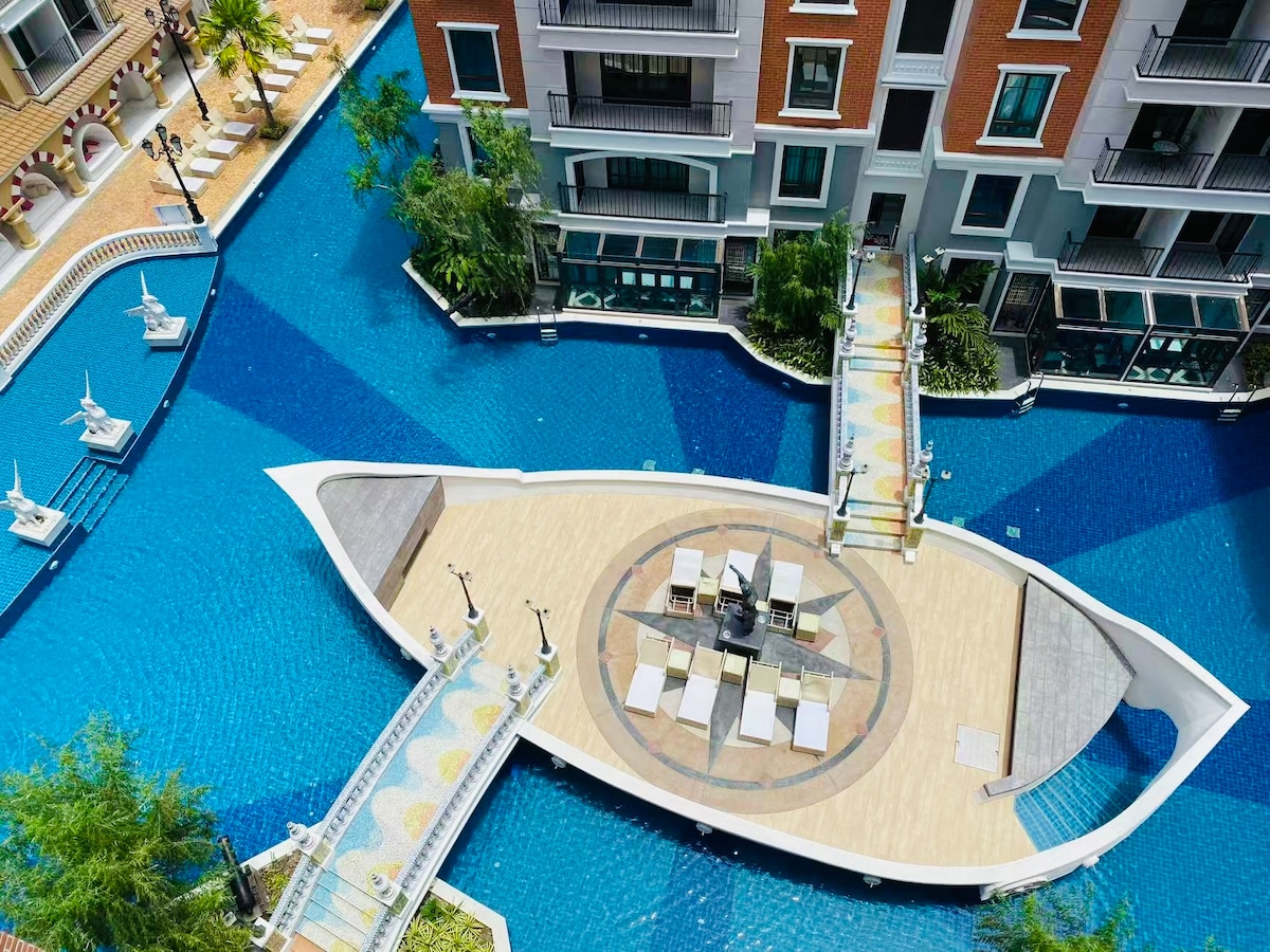 理位置得天独厚,位于芭提雅市中心,出门就是繁华的商业街,吃喝玩乐一应具备。购物,美食,娱乐,酒吧 ,一切都在 喜欢安静的客人请勿预订这里,因为这是市中心接近酒吧 出门步行沙滩400米,公寓门口早餐店The kiss 正规按摩店Oriental Aroma massage,出公寓门口有双条车一人10泰铢,可以到达21航站商场和步行街 公寓离21航站商场10分钟 离步行街9分钟 最让人惊喜的,就是这里的配套设施了,宽敞的游泳池,无论是畅游还是晒太阳,都能够满足你,还有免费的健身房和各种运动设备,让你的身材时刻保持在线 楼下24小时的保安随时随地帮助到你 欢迎来到芭提雅 享受芭提雅的每时每刻 很高兴成为你的房东。