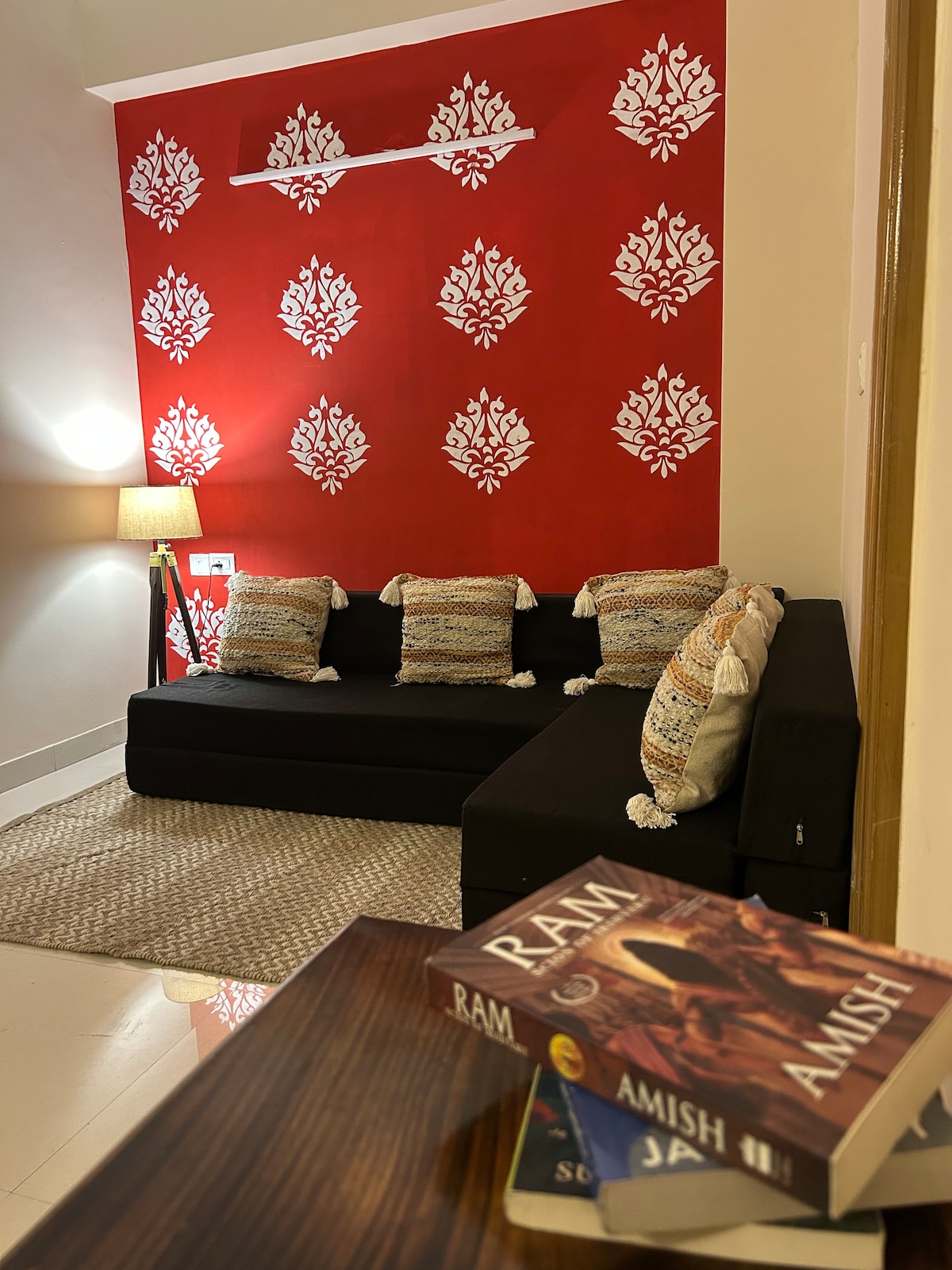 Peaceful, Artsy Family Retreat in Vrindavan Tastefully designed studio blending Indian heritage with modern comfort Just 10–15 minutes from Prem Mandir, ISKCON & Banke Bihari Temple Calm, soulful interiors ideal for relaxation or spiritual rejuvenation Cozy balcony overlooking a serene garden — perfect for morning tea or meditation Suitable for families and couples seeking a peaceful getaway Affordable pricing for a comfortable and enriching stay ₹400 extra for 3rd adult
