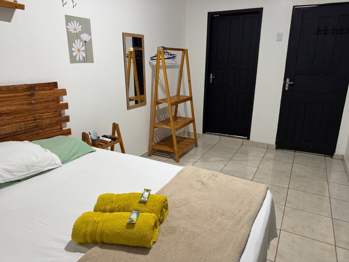 Հարմարավետություն և գործնականություն մեկ տեղում ։ Մեր կացարանն ունի անվճար Wi - Fi, օդորակիչ և ամբողջական խոհանոց ՝ հագեցած բոլոր կենցաղային պարագաներով ՝ ձեր կերակուրները հեշտությամբ պատրաստելու համար ։ Սենյակը հարմար է բոլորի համար՝ ունի երկտեղանի մահճակալ, մեկտեղանի մահճակալ և ցանցաճոճ, իդեալական է զույգերի, ընկերների կամ փոքր ընտանիքների համար։ Լոգասենյակը հարմարավետ է և ապահովում է գործնականություն ու բարեկեցություն ամբողջ այցի ընթացքում։ 🏡 Ամեն ինչ նախատեսված է, որպեսզի ձեզ զգաք ինչպես տանը։
