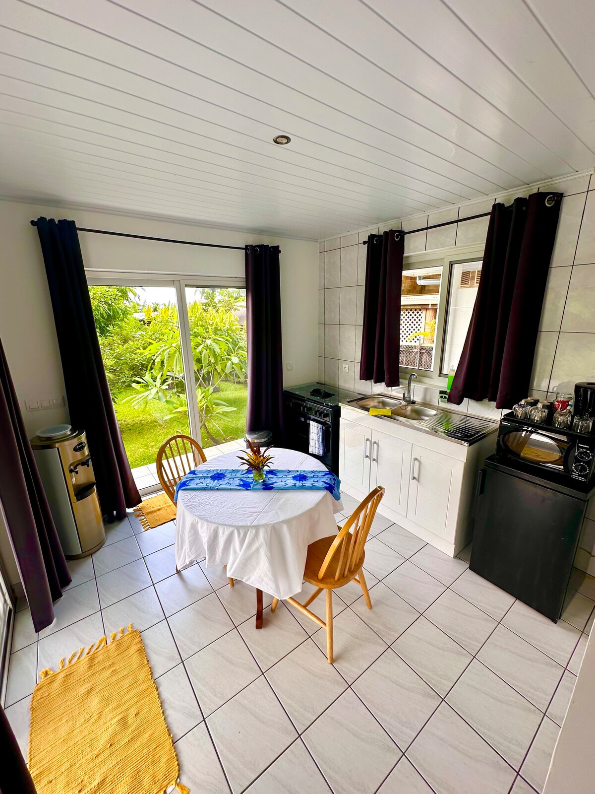 Ia Orana, si vous cherchez un bungalow insolite, niché en pleine nature, avec une magnifique vue mer, vous êtes au bon endroit! Il est constitué de 2 chambres avec lits doubles, d’une kitchenette et d’une salle de bain privative, pour une immersion totale dans la nature Tahitienne. Disposant d’un espace extérieur comme intérieur, vous serez au calme dans ce lieu plein de charme. Natif de Tahiti et capitaine d'excursion je pourrais vous proposer une sortie dans le lagon avec vos amis ou famille