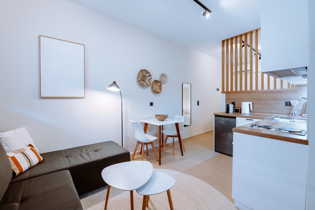 Our intention was to create a place both elegant and modern. In the process , we added some boho style touches . We want our guests to experience deep relaxation and a feeling of surrender. For the body and soul. You deserve it! Drink your coffee after finishing work on our spacious living room . Eat a delicious breakfast or enjoy an evening drink at the balcony. Sleep deeply. Have a rejuvenating shower. Feel like home. Enjoy truly!