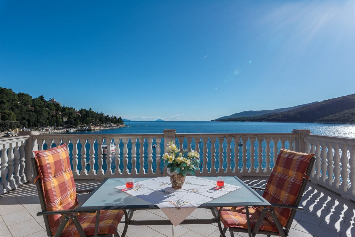 Մեր ընտանեկան տունը գտնվում է Ռաբակի կենտրոնում, անմիջապես ծովի ափին, որտեղից բացվում է Ռաբակի ծոցի ամենագեղեցիկ տեսարանը: Բնակարանը գտնվում է տան առաջին հարկում և հարմար է մինչև 4 հոգու և մեկ երեխայի համար: Ճամփորդական մահճակալի համար (ձեր սեփական ճամփորդական մահճակալը չի թույլատրվում) ժամանելիս վճարում եք 4 € մեկ գիշերվա համար: Այն ունի մեծ քնելու և ապրելու տարածք, խոհանոց, ինչպես նաև ճաշասենյակ, լոգասենյակ և սեփական մեծ կտուր ՝ ծովի ցնցող տեսարաններով ։ Մենք ունենք օդորակիչ: