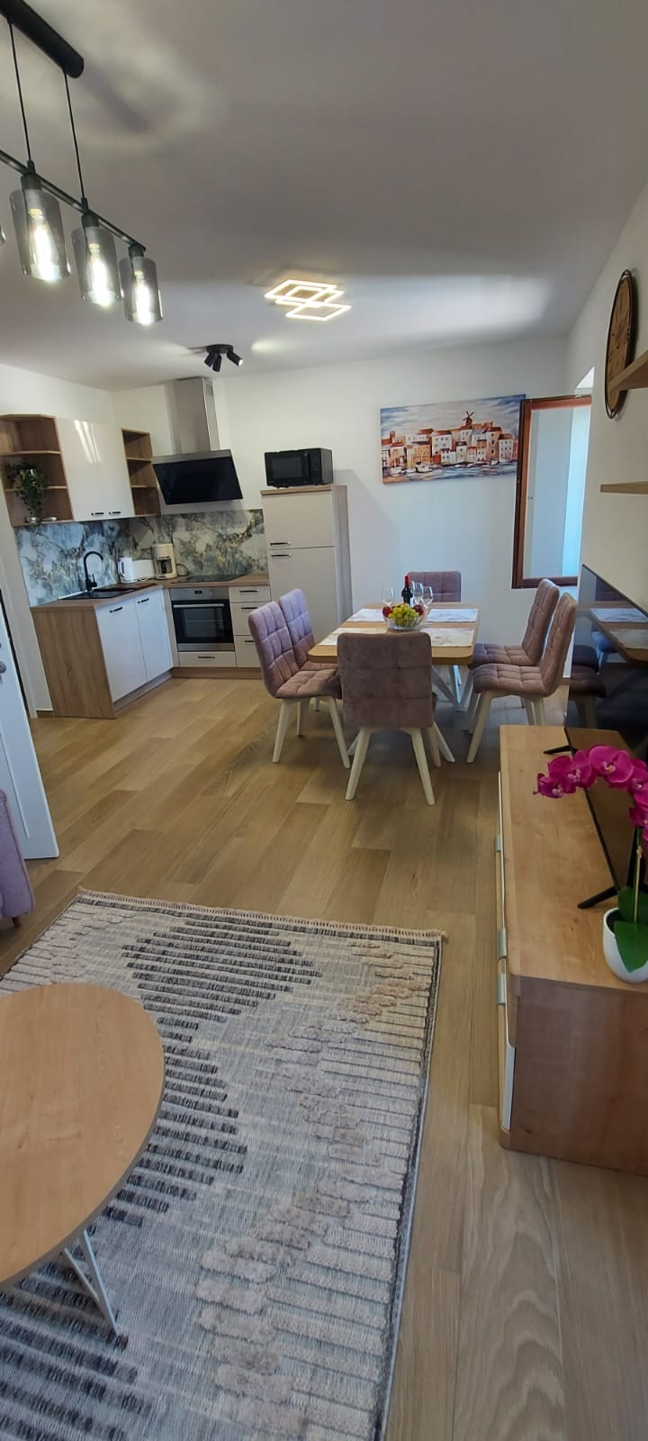 Ծովային անհամեմատելի տեսարաններով այս գեղեցիկ բնակարանը գտնվում է սովորական բնության մեջտեղում գտնվող հանգիստ վայրում ՝ շրջապատված ձիթապտուղով և անուշահոտ նարդոսով ։ 2 սենյականոց բնակարանի առաջին հարկ, 80 մ ²։ Մեծ հյուրասենյակ ՝ նստատեղով, և թախտ, ճաշասենյակ, խոհարարական կղզի (կերամիկական սալօջախ), ջեռոց, միկրոալիքային վառարան, ամանալվաց մեքենա, 1 երկտեղանի ննջասենյակ ՝ 1 երկտեղանի մահճակալով ։ Մահճակալ (2,0 մ լայնությամբ), լոգասենյակ ցնցուղով/հյուրասենյակով ՝ մեծ քնելու կղզիով, երկու հատ ՝ յուրաքանչյուրը 40 մ2,առանձին կայանատեղի