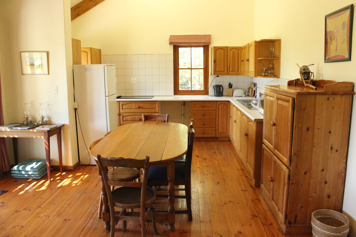 Գտնվում է արքայազն Ալբերտի ագարակում ՝ առանձնությամբ, խաղաղությամբ և անվտանգությամբ, ռեստորաններից, խանութներից և թանգարանից ոտքով հեռավորության վրա ։ Երեխաները ողջունելի են ՝ դարձնելով այն իդեալական հանգիստ ընտանիքի կամ միասին ճանապարհորդող 2 զույգերի համար ։ Օդորակիչ, լողավազան և բրայլյան հարմարություններ, բուխարի ձմռան համար: Էլեկտրականությունը արևային էներգիայով աշխատող և ցանց է: Երկու երկտեղանի enuites դարձնել այն հարմարավետ, լրացուցիչ հավաքակազմ մատչելի [Acacia հավելված, Գիրք առանձին]: Հյուսիսային կանգնած verandah համար կեսօրին sunsets.