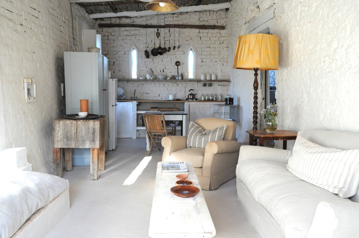Այս մասնավոր, բաց հատակագծով, ինքնասպասարկվող ֆերմերային քոթեջը հին աշխարհի հմայքն է առաջարկում նորաձև, մինիմալիստական շունչով։ Նախատեսված է էկոլոգիապես գիտակցված ապրելու համար ՝ այն աշխատում է նվազագույն էլեկտրաէներգիայով և ունի սառնարան, ջրի հովացուցիչ, գազօջախ և գազի գեյզեր ։ Թեև չկա հեռուստացույց, Wi - Fi կամ ցանցի ուժեղ ծածկույթ, այն լիցքաթափվելու և անջատելու կատարյալ վայր է ։ Ամբողջ շքեղ սպիտակեղենով և հարմարավետ մանրամասներով քոթեջն առաջարկում է խաղաղ, հարմարավետ հանգիստ. ձեր իդեալական տունը տնից հեռու ՝ ագարակում: