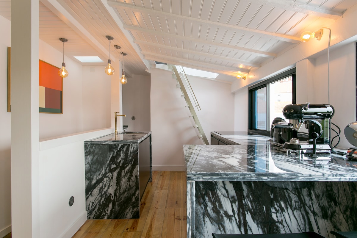 Վայելեք յուրահատուկ փորձառություն Կիադո թաղամասում գտնվող այս շքեղ պենտհաուսում ։ Քաղաքի և գետի հիասքանչ տեսարանով այն ունի 180 աստիճան անկրկնելի տեսարանով լոֆթ և կտուր ։ Բաց խոհանոցը նախագծված է բարձրորակ տեխնիկայով և ճաշասենյակով, որը տանում է դեպի հյուրասենյակ ։ Երեկոյան 2 մեծ մահճակալներ և 3 լոգասենյակ ՝ մոնտաժված հանդերձարաններով, ապահովում են հանգիստ, հարմարավետություն և դիմավորում: Վերևի հարկի ձեղնահարկն ունի բար, հեռուստացույց և հարմարավետ բազմոց ՝ հանգիստ ժամանակ անցկացնելու համար ։