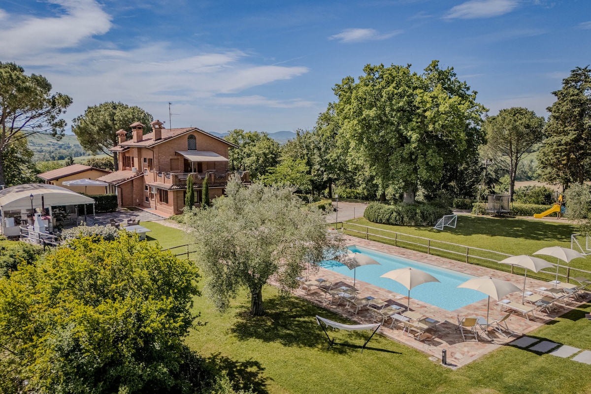 Lovely villa with heated pool, two jacuzzis and sauna in the hills of Marche region, 20 minutes from the Adriatic coast