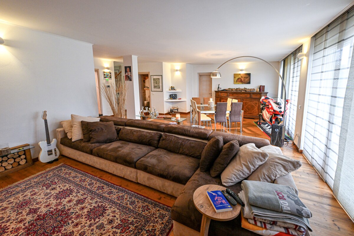 Մեծ պատշգամբից կամ կտուրից բացվում է հիասքանչ տեսարան դեպի շրջակա լեռները և ՅՈՒՆԵՍԿՕ - ի բնական պարկը: Մեր տունը գտնվում է ձմռանը լեռնադահուկային լանջերի մոտ գտնվող բնակելի տարածքում և ամռանը թեթևից միջին դժվարությամբ արշավների և հեծանվային շրջագայությունների ռազմավարական սկզբնակետում: Ընդունարանում ինչ - որ մեկը միշտ հասանելի կլինի ձեր հարցերի համար ։