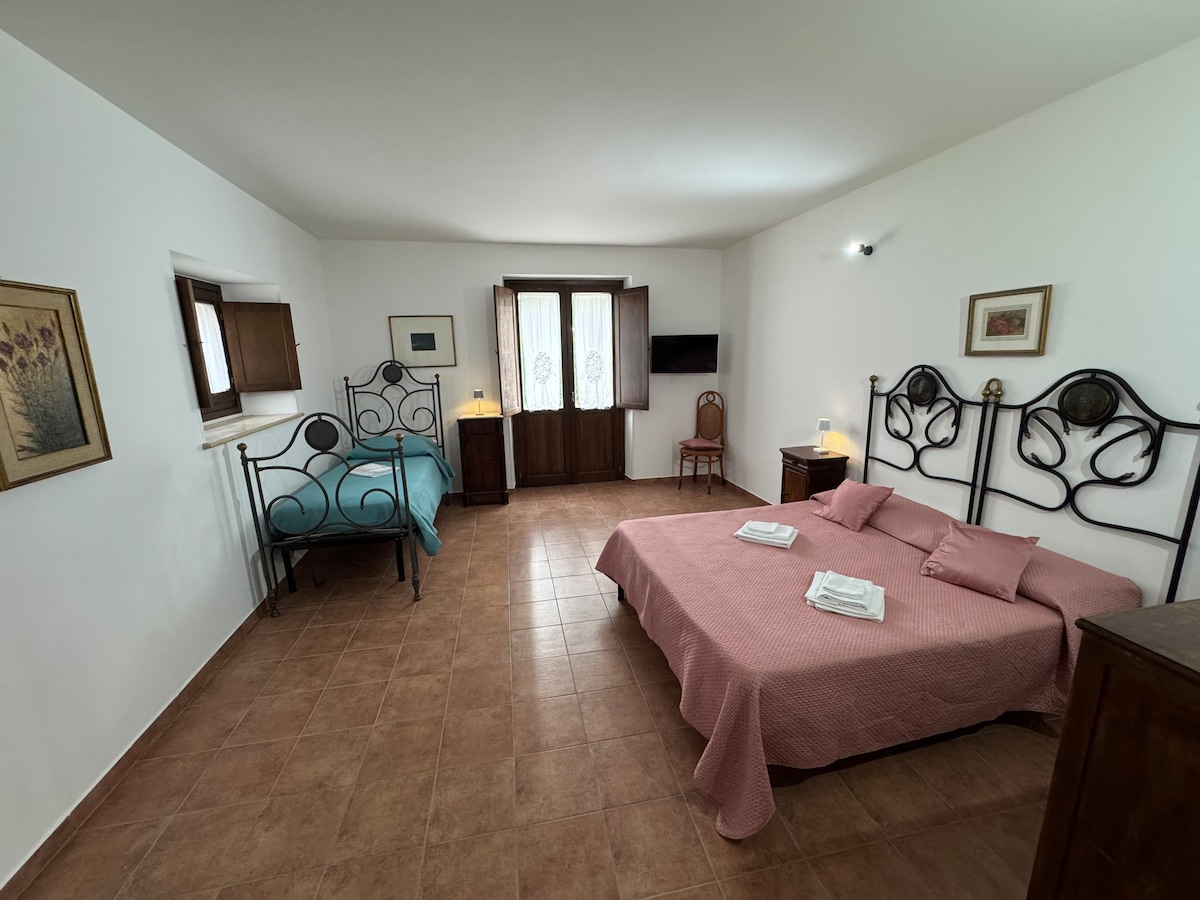 Շատ հանգիստ բնակարան գյուղական վայրերի մեջտեղում ։ Մաքրեք մեր համեղ և տանը պատրաստված ձիթապտղի յուղը ։ Գինին հասանելի է նաև ձեր սեփական արտադրությունից: Առանձին մուտքով առաջին հարկի բնակարանն ունի 2 ննջասենյակ ՝ երկտեղանի մահճակալներով, իսկ հյուրասենյակում ՝ երկու հոգու համար նախատեսված մեկ թախտ ։ Բնակարանն ունի երկու զուգարան , որոնցից մեկը հագեցած է ցնցուղախցիկով, լվացքի մեքենայով և չորանոցով ։ Կարոնտեի ջերմային լոգարանների պատճառով Լամեզիա Տերմեի օդանավակայանը գտնվում է մոտ 10 կիլոմետր հեռավորության վրա ։