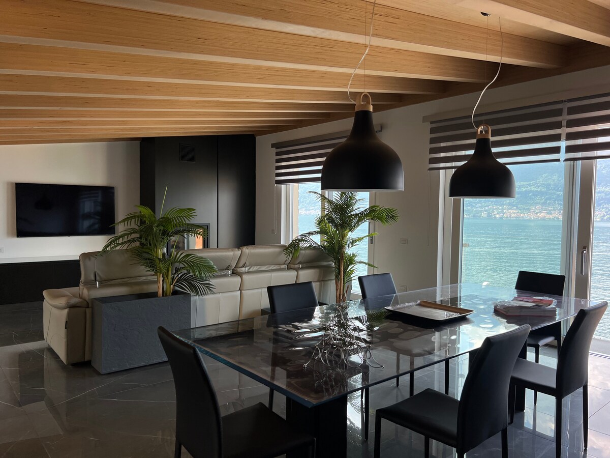 Spacious and comfortable apartment with the most amazing views of Lake Como. Two bedrooms. Big terrace with sun-loungers overlooking Lake Como. There is a big jakuzzi in the garden and a shower comfortable for taking in hot weather. Private garden with barbeque. Free parking. Free Wi-Fi.