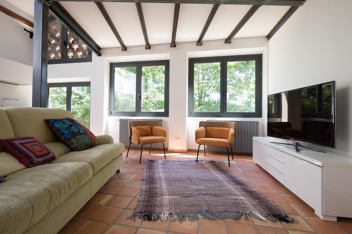 Meraviglioso cascinale del 900, ristrutturato, immerso nel verde, a 3 minuti dal centro storico di Alba. Un ingresso comune a tutte le unità, conduce all’appartamento che si sviluppa su 150 mq , un open space con cucina attrezzata e sala pranzo, area soggiorno con tv, bagno con doccia in cristallo e soppalco con camera da letto matrimoniale. Nell'ala ovest della casa, secondo soppalco con letto matrimoniale, un salotto con TV, divano letto matrimoniale e secondo grande bagno con doccia.