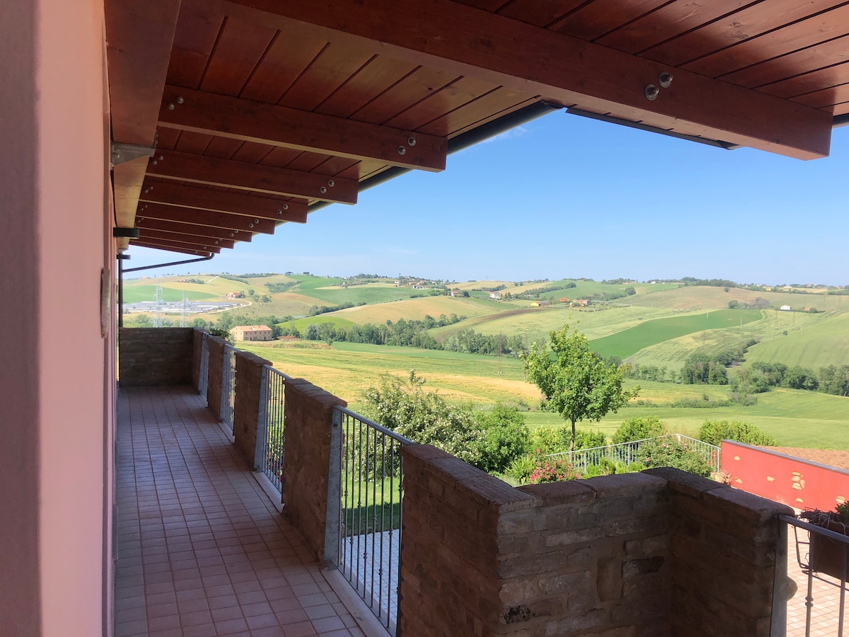 Այգու և ծովի միջև գտնվող կանաչ Յեսին բլուրների գյուղատնտեսական լանդշաֆտում ՝ Villa Rosa - ն իդեալական վայր է գեղեցիկ վայրեր այցելելու և լավ Մարչե կյանքի համը համտեսելու համար: