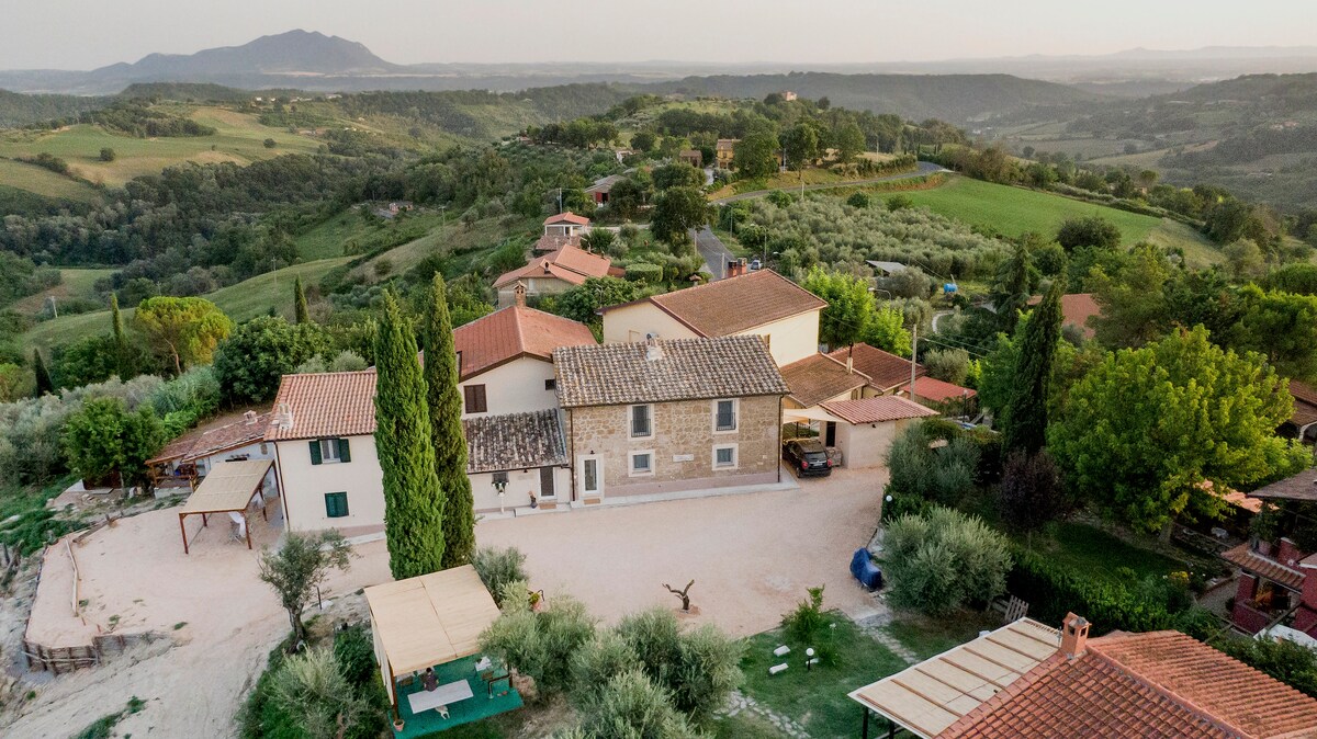 150 քառակուսի մետր մակերեսով անկախ ագարակն ընկղմված է Սաբինա բլուրների կանաչի մեջ ։ Տեղանքը հանգիստ է և համայնապատկերային, իդեալական է Լացիո և Ումբրիա միջնադարյան գյուղերին հասնելու համար ։ Տան ներսում կա երկու բացօթյա մանղալ և երկու բուխարի ։ Մոտ 50 պտղատու բույսերով այգի, որտեղ կարող եք ընտրել սեզոնային միրգ ։ Պահեստում կա Wi - Fi և ջեռուցման համակարգ, 3 սմարթ հեռուստացույց և լվացքի մեքենա
